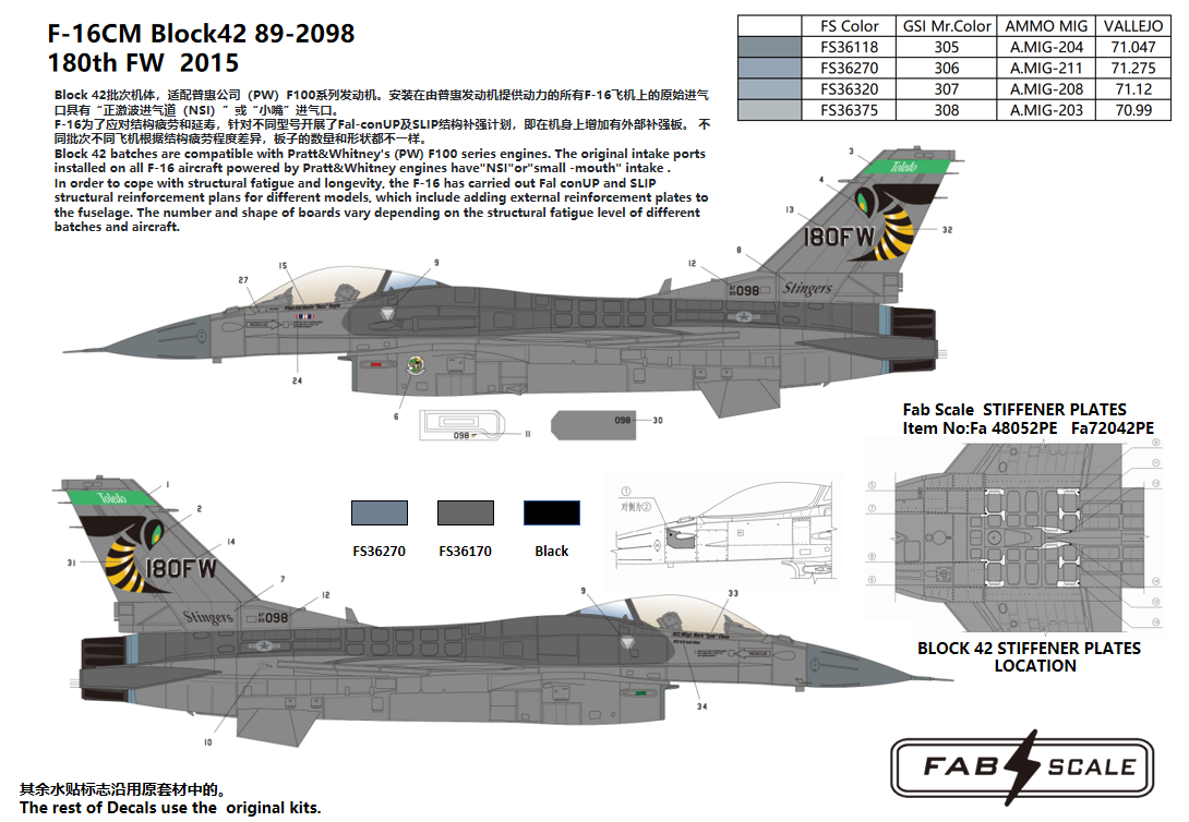 FabScale Studio - 1/48 USAF Lockheed-Martin F-16CM Fighting Falcon /DM Block 42 180th Fw 'Stingers'2015