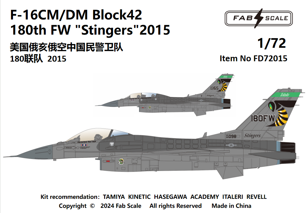 FabScale Studio - 1/72 USAF Lockheed-Martin F-16CM Fighting Falcon /DM Block 42 180th Fw 'Stingers'2015