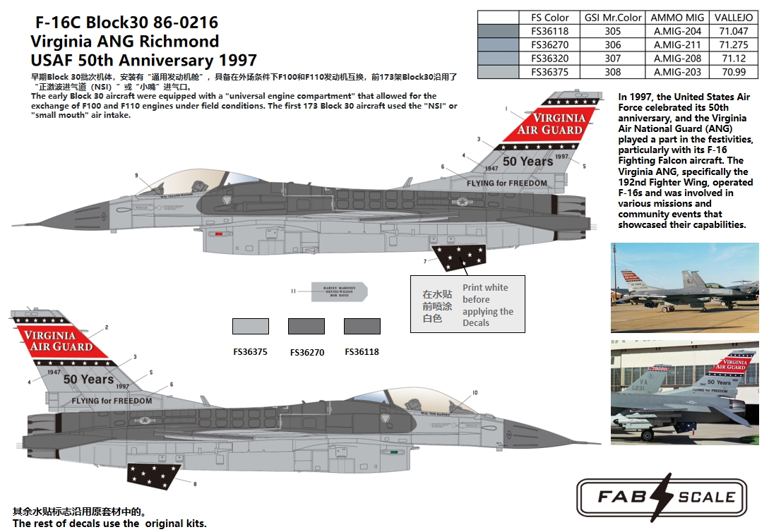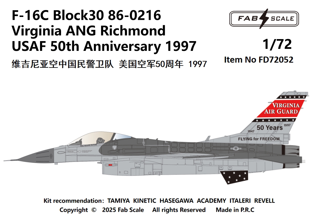 FabScale Studio - 1/72 Lockheed-Martin F-16C Block30 86-0216 Virginia Ang Richmond