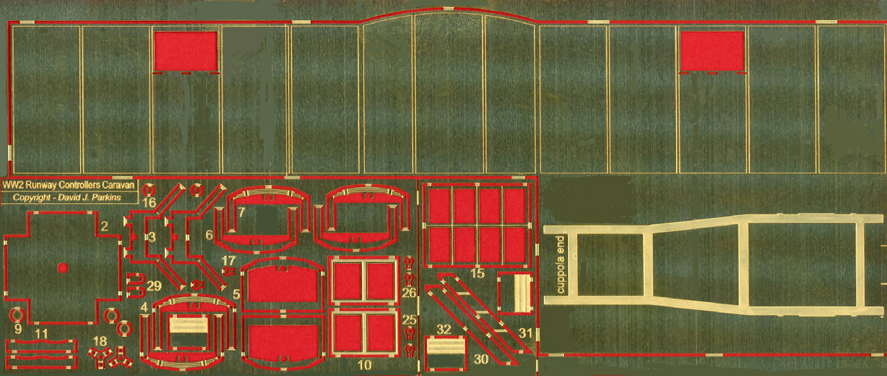 This kit depicts one of the distinctive WW2 towed runway controller's caravans. These were towed to the end of the active runway by vehicles such as the Commer Q2 . These vans had a glazed lookout framework in the roof, and carried a windsock on a mounting bracket included in the kit. They were completely covered in black and white checks, whilst in the late and post-war periods this was often replaced with red and white checks. There are decals included for both variants, for sides, ends and roof with instructions on their preparation and application.