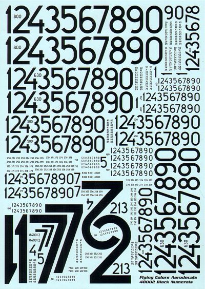 Flying Colors Aero - 1/48 Scale 'modern' black numerals as used by the Swedish Air Force since 1963