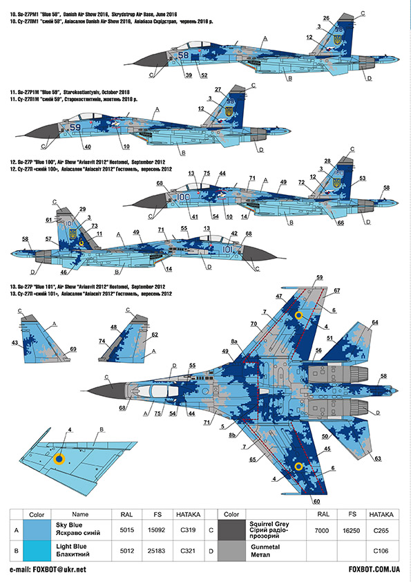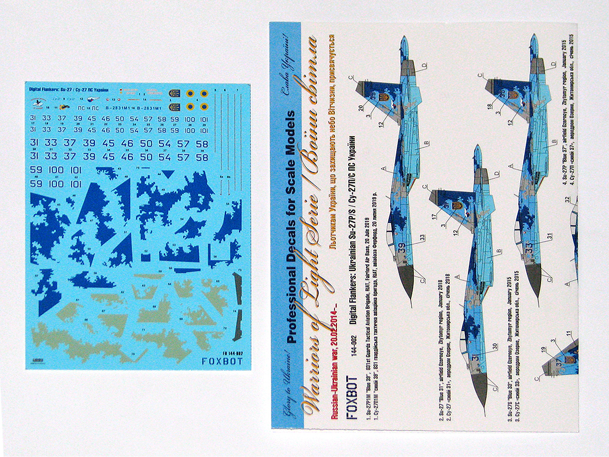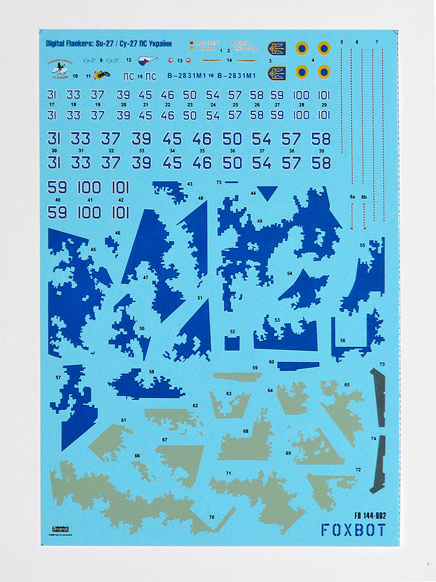 Foxbot Decals - 1/144 Sukhoi Su-27S/P Ukranian Air Forces, digital camouflage (for Trumpeter kits)