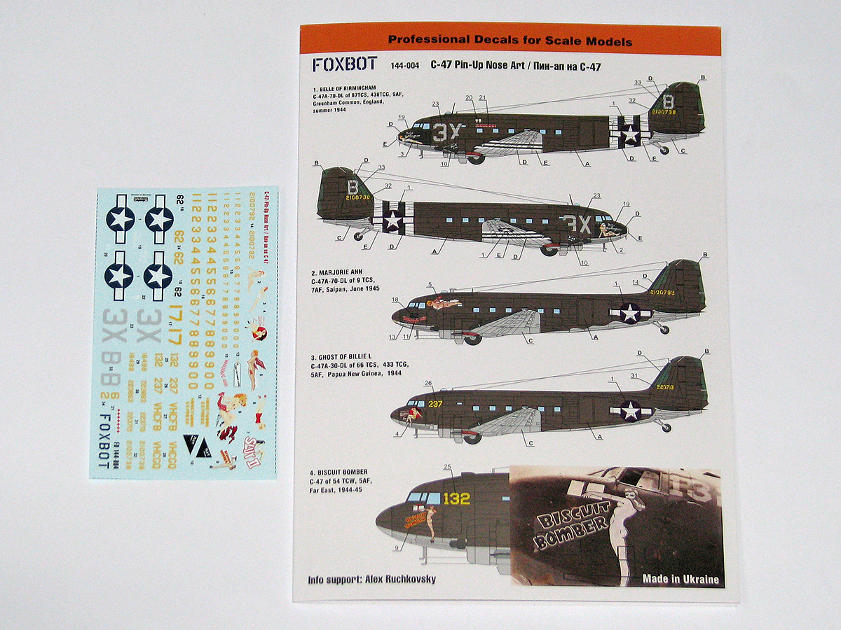 Foxbot Decals - 1/144 Douglas C-47 Skytrain/Dakota 'Pin-Up Nose Art and Stencils' Academy, Minicraft Model, Roden. Eastern Express kits
