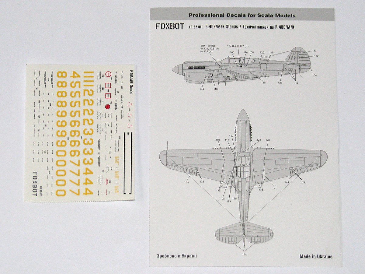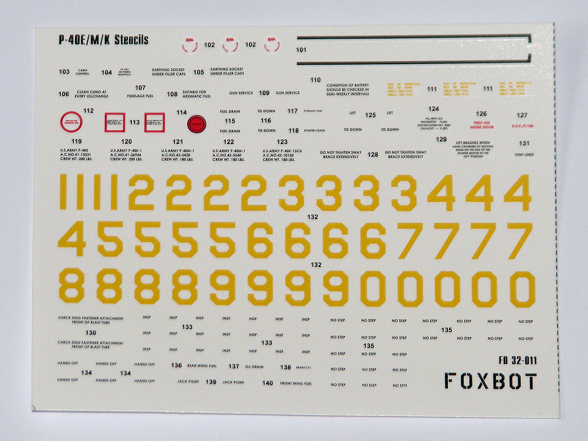 Foxbot Decals - 1/32 Stencils for Curtiss P-40E/P-40M/P-40K (for Eduard, Hasegawa, Hobbycraft, Trumpeter and Revell kits)