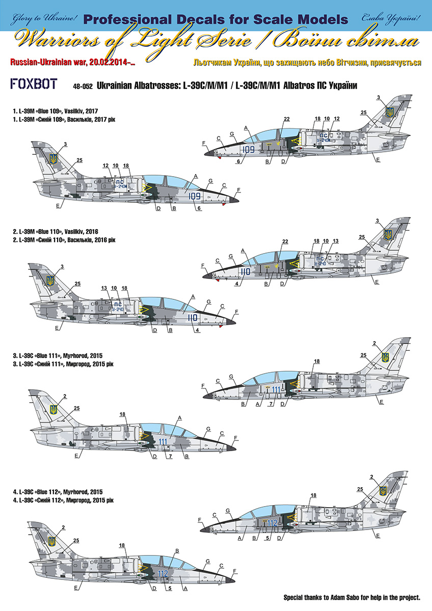 Foxbot Decals - 1/48 Ukrainian Digital Albatrosses: Aero L-39C/M1 (for Eduard, Mpm Production, Special Hobby, Trumpeter kits)