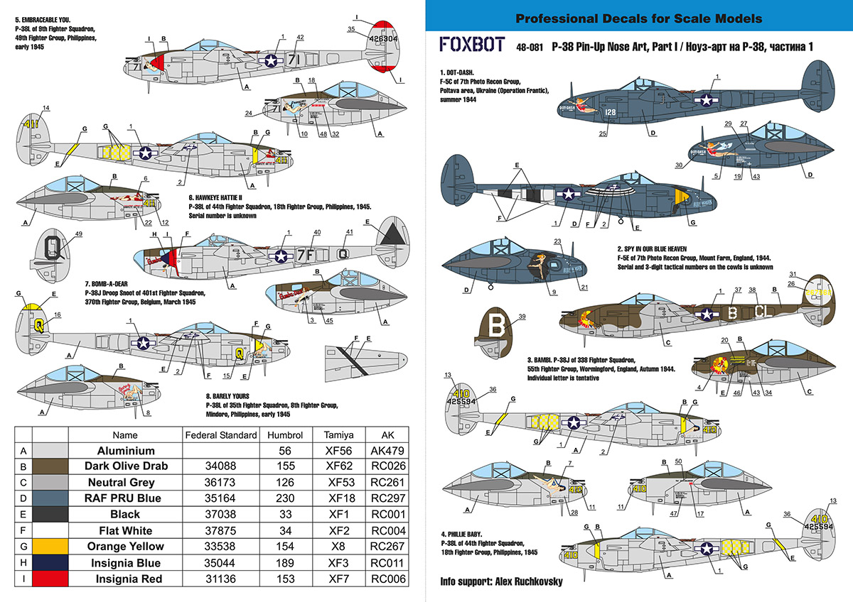 Foxbot Decals - 1/48 Lockheed P-38 Lightning Pin-Up Nose Art, Part 1