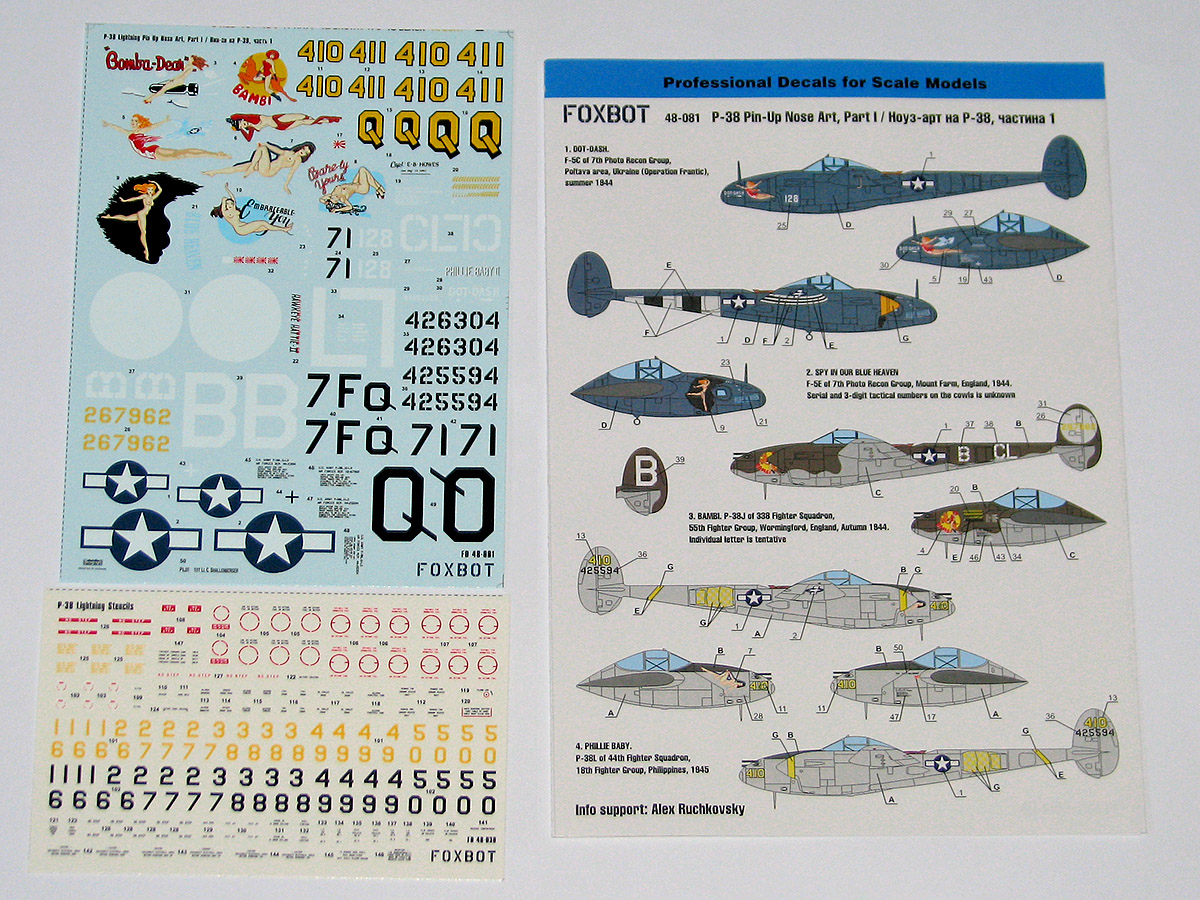 Foxbot Decals - 1/48 Lockheed P-38 Lightning Pin-Up Nose Art, Part 1 (Stencils not included)