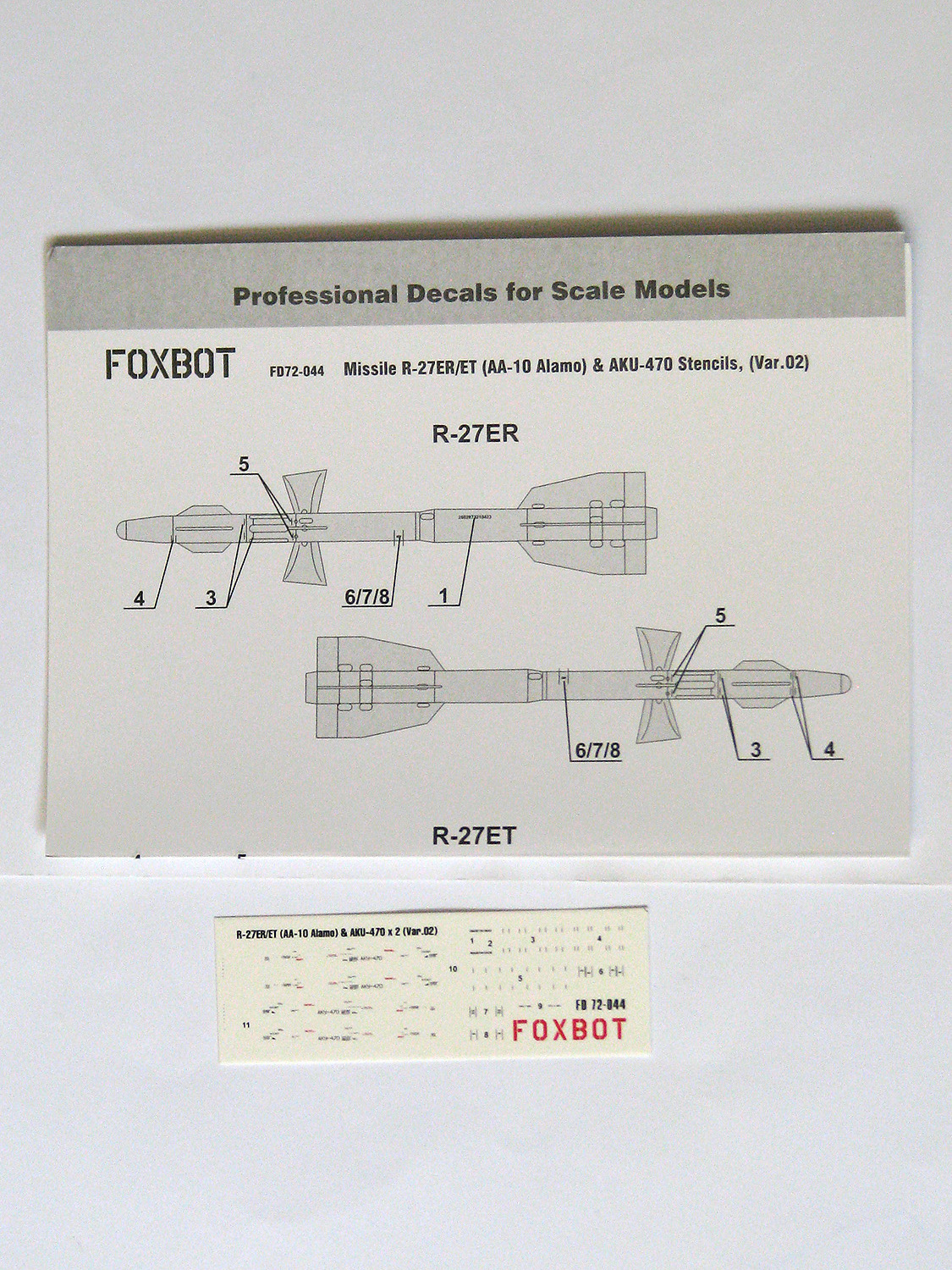 Foxbot Decals - 1/72 Soviet Missile R-27ER/ET AA-10 Alamo & AKU-470 Stencils Var.2