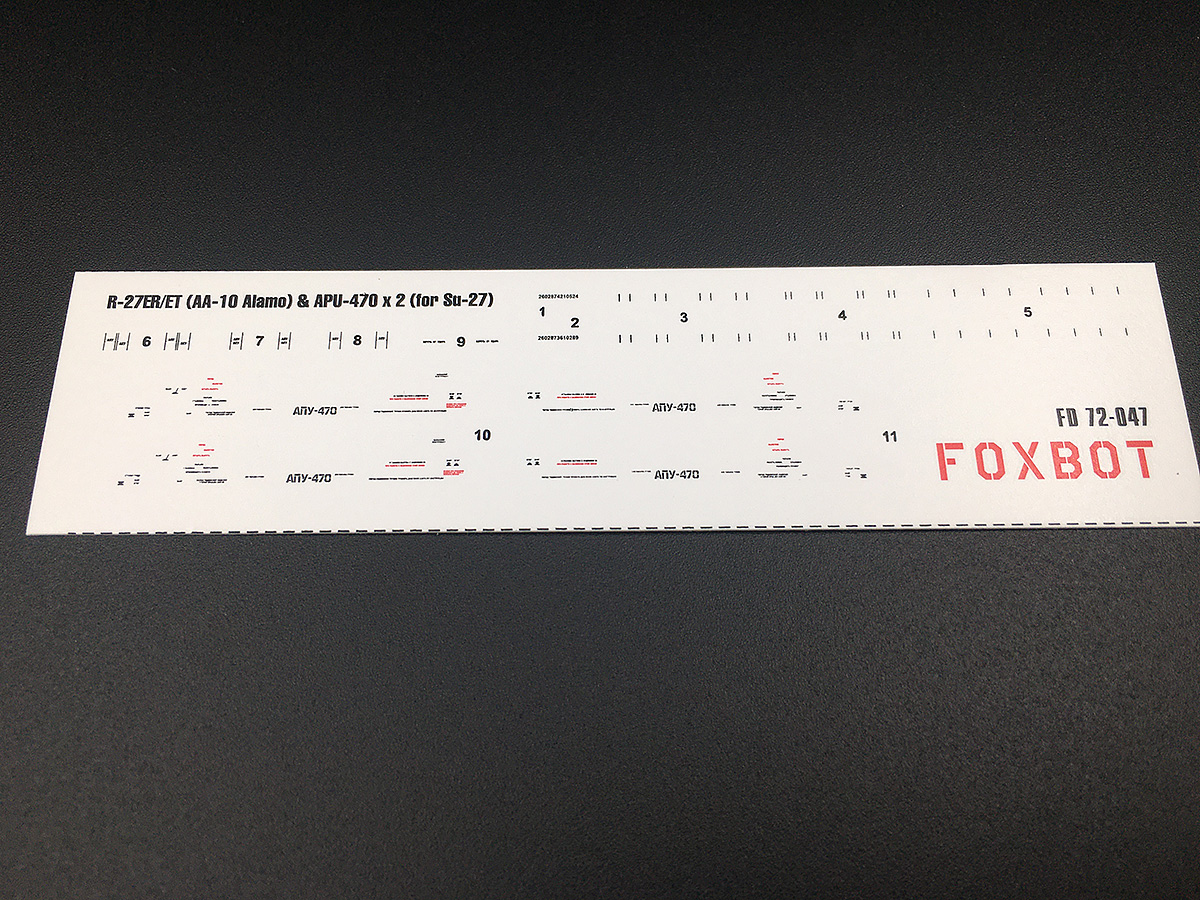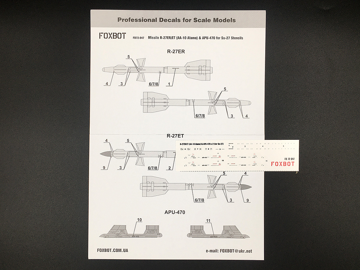 Foxbot Decals - 1/72 Soviet Missile R-27ER/ET (AA-10 Alamo) & APU-470 for Sukhoi Su-27 Stencils