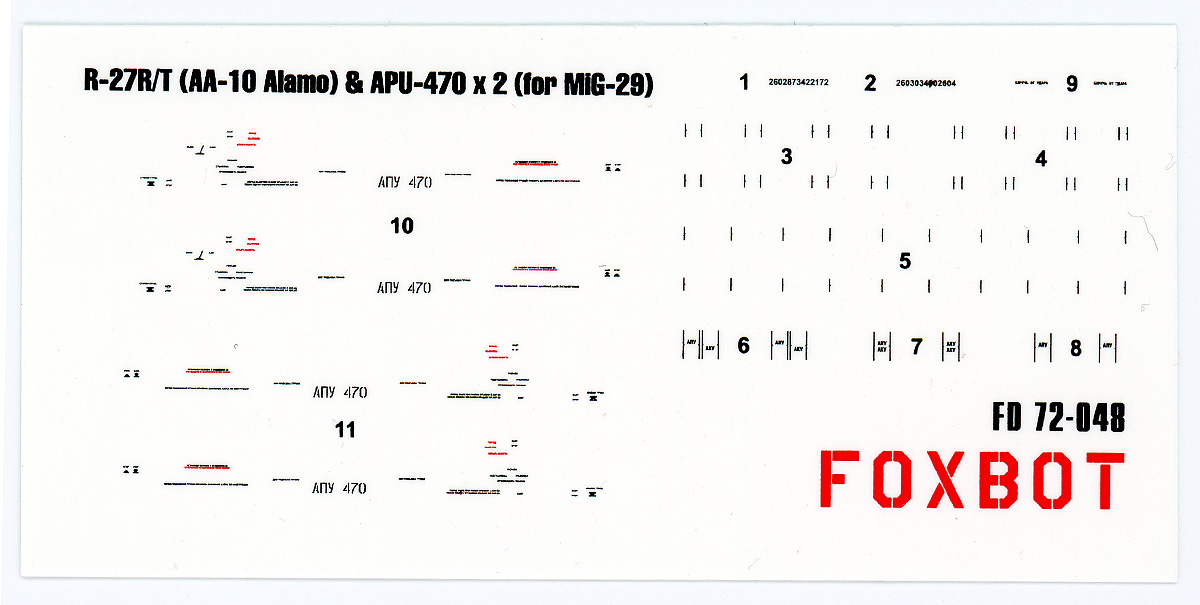 Foxbot Decals - 1/72 Stencils for Missile R-27R/T AA-10 Alamo & APU-470 for MiG-29 and other