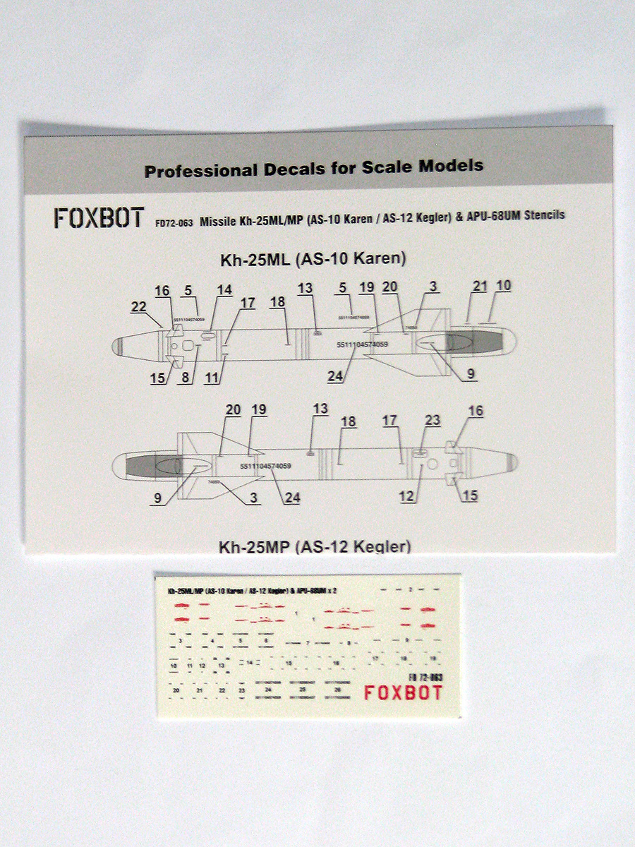 Foxbot Decals - 1/72 Stencils for Missile Kh-25ML/MP AS-10 Karen/AS-12 Kegler & APU-68UM
