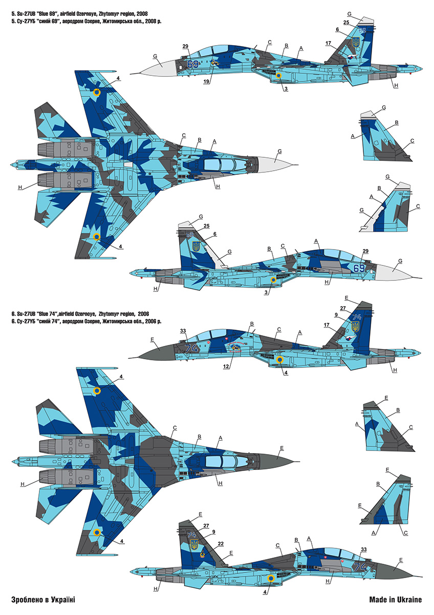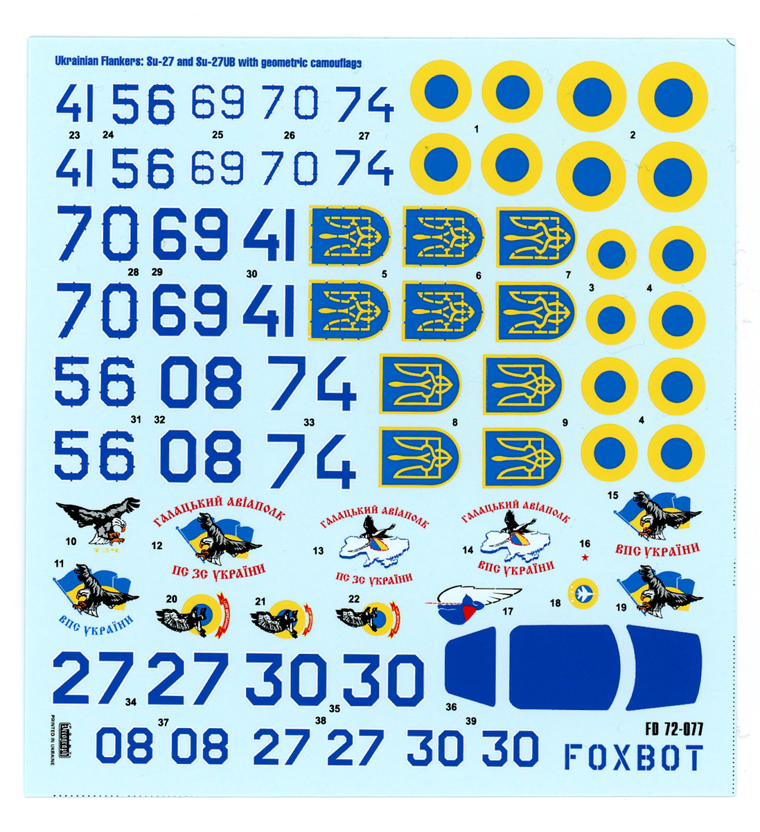 Foxbot Decals - 1/72 Ukrainian Su-27 and Su-27UB with geometric camouflage for Airfix, Hasegawa, Heller, ICM, Trumpeter