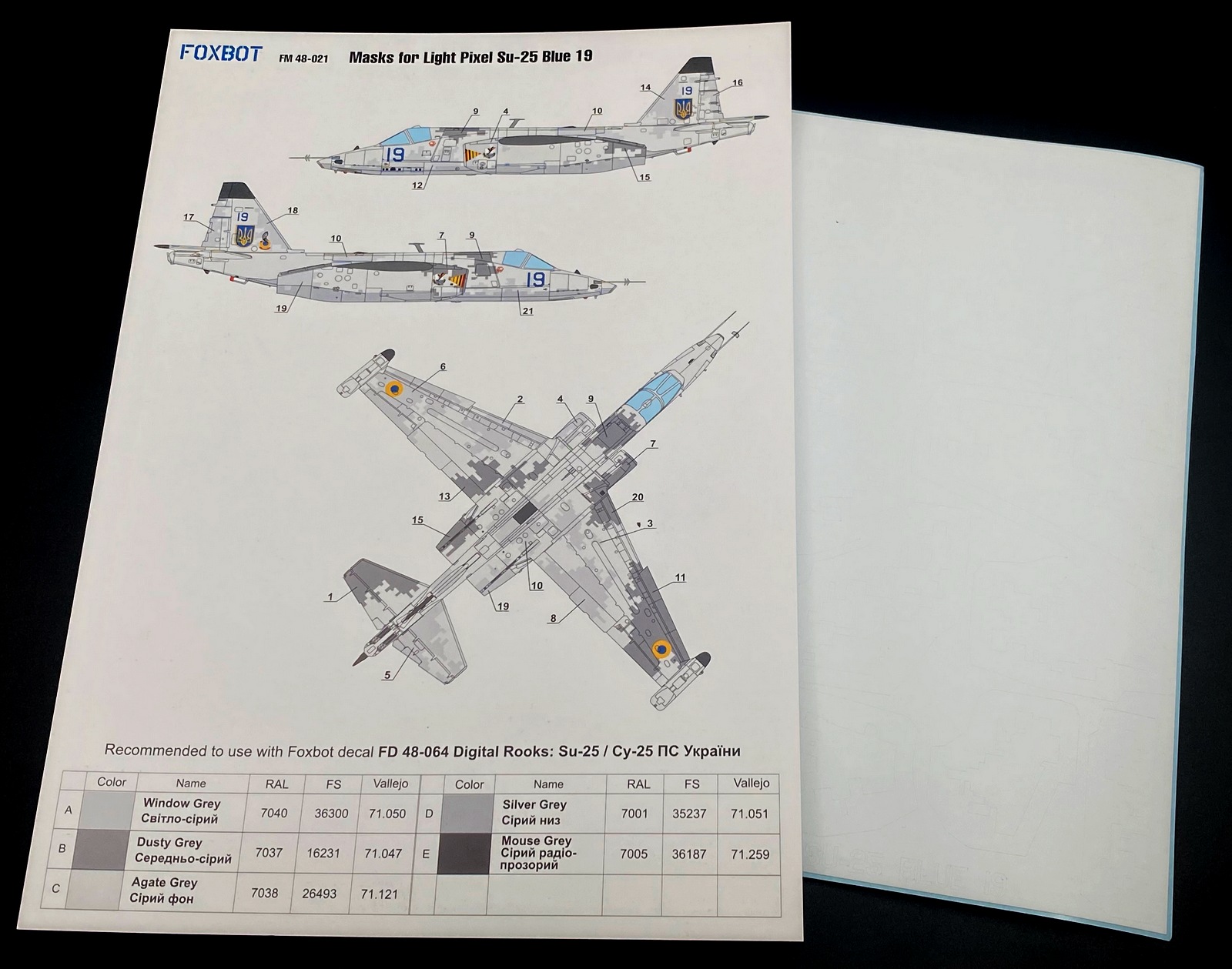 Foxbot Decals - 1/48 Masks for Sukhoi Su-25 'Blue 19', Ukranian Air Forces, Light Pixel camouflage OEZ, KP, Revell