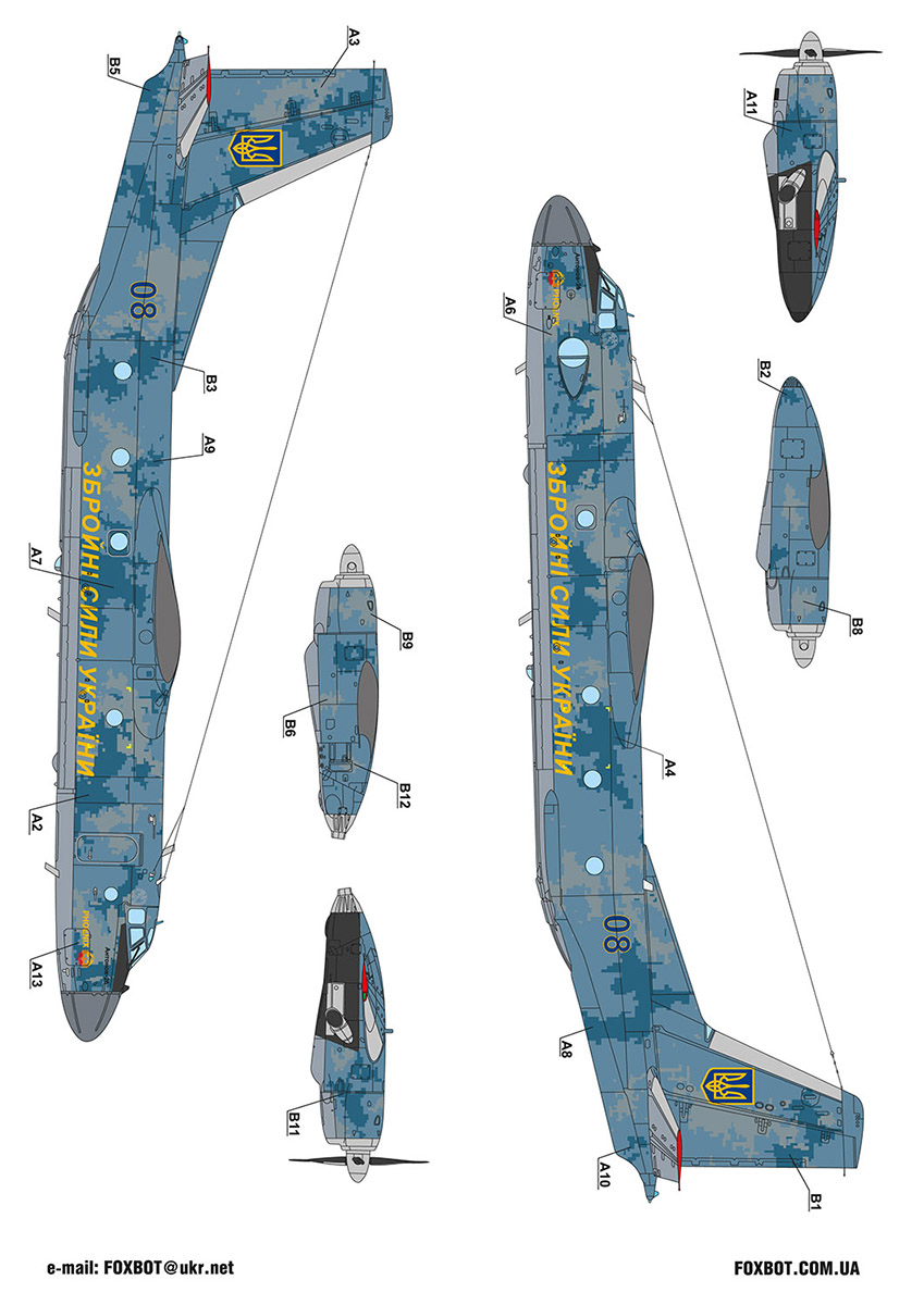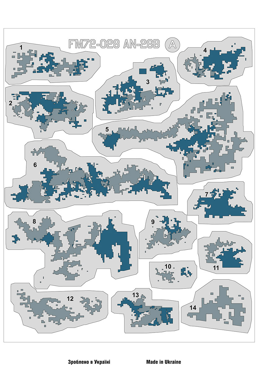 Foxbot Decals - 1/72 Masks for Antonov An-26, Ukranian Air Forces, digital camouflage (Use & Foxbot Decal) A-Model, Az Model kits