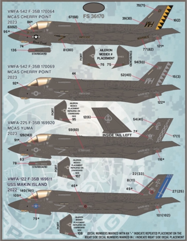 The latest edition in our F-35 Anthology series features 12 options for the new Tamiya F-35B kit. Two complete models can be built with the stencils provided. The jets covered include: