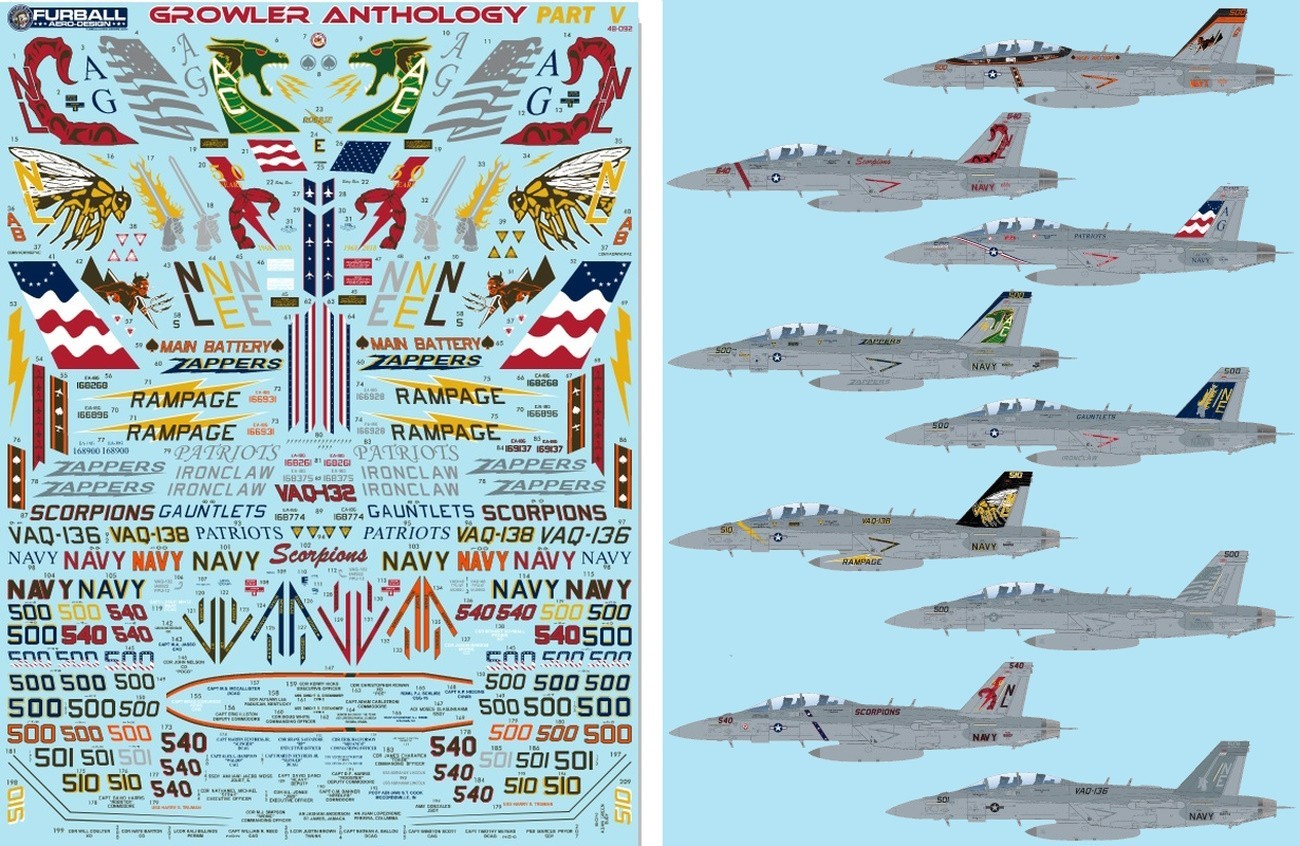 Finally we have 'Growler Anthology Part V' 48-092. This set nine options for the EA-18G: