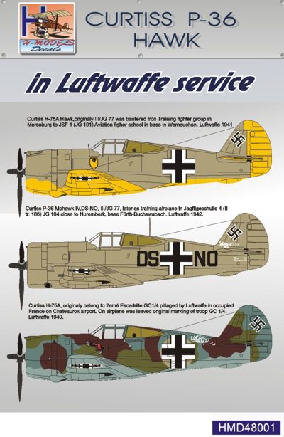 H-Model Decals - 1/48 Curtiss P-36 Hawk. Luftwaffe