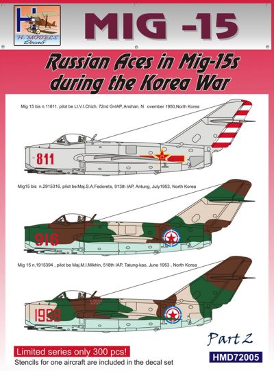 H-Model Decals - 1/72 Mikoyan MiG-15 Soviet Aces in Korea, Pt.2