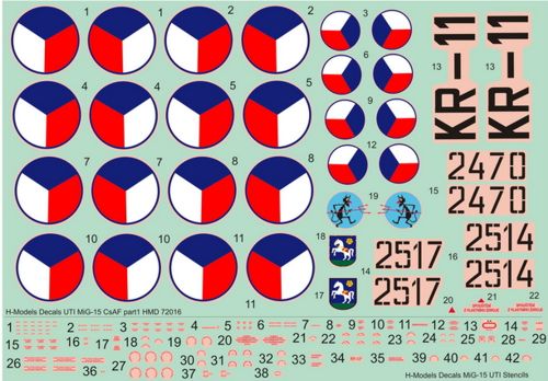 H-Model Decals - 1/72 Mikoyan MiG-15UTI in CzAF, Pt.1