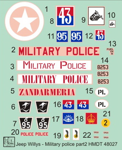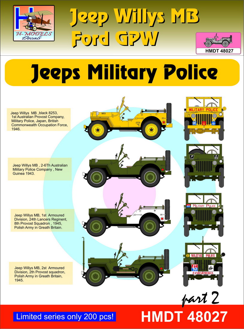 H-Model Decals - 1/48 Willys Jeep MB/Ford GPW Military Police Part 2