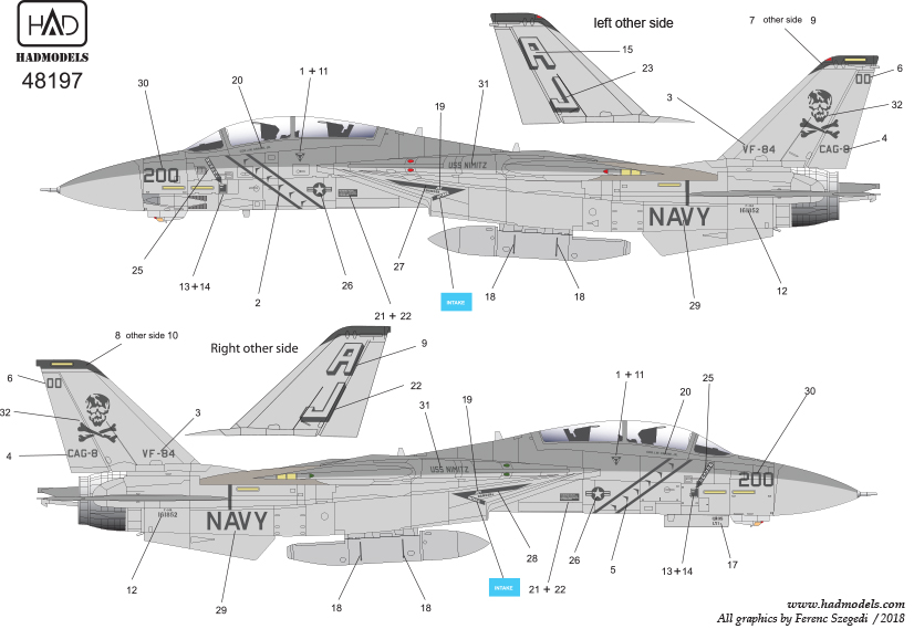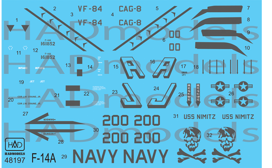 HAD - 1/48 Grumman F-14A Tomcat VF-84 Jolly Rogers low visibility USS Nimitz 1986