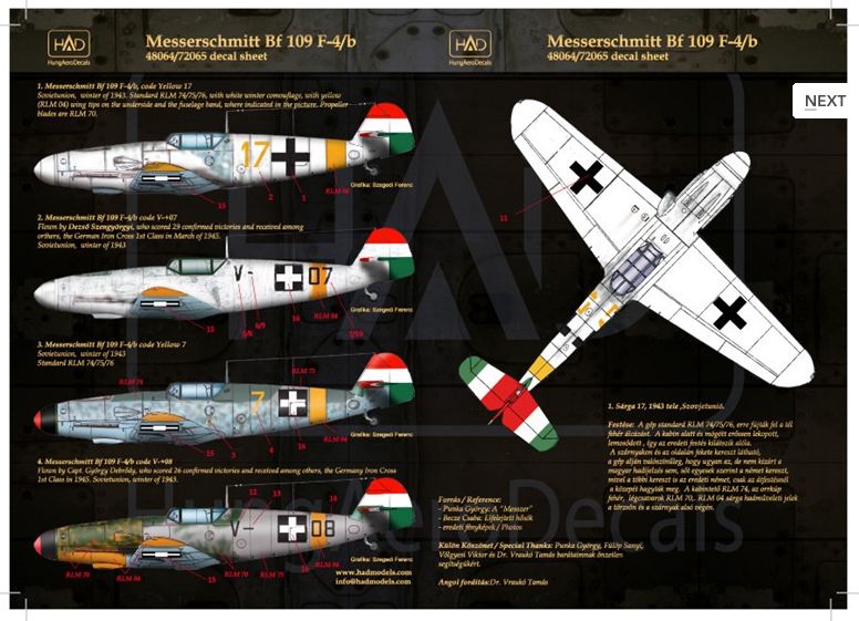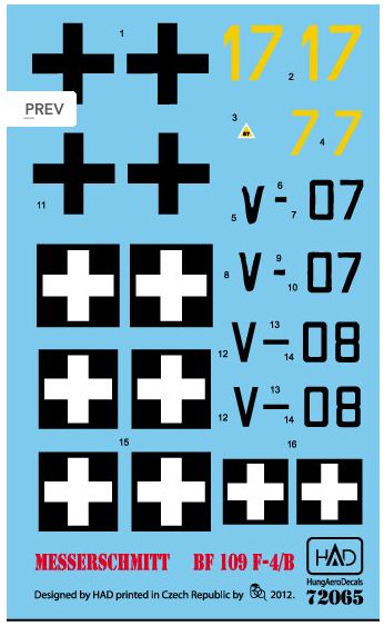 HAD - 1/72 Decal Bf 109 F-4/b (yellow 17, yellow 7)