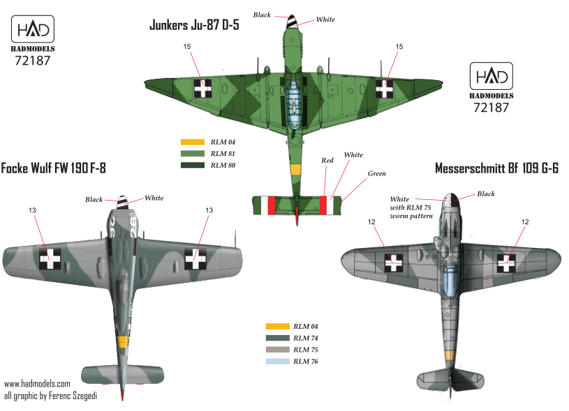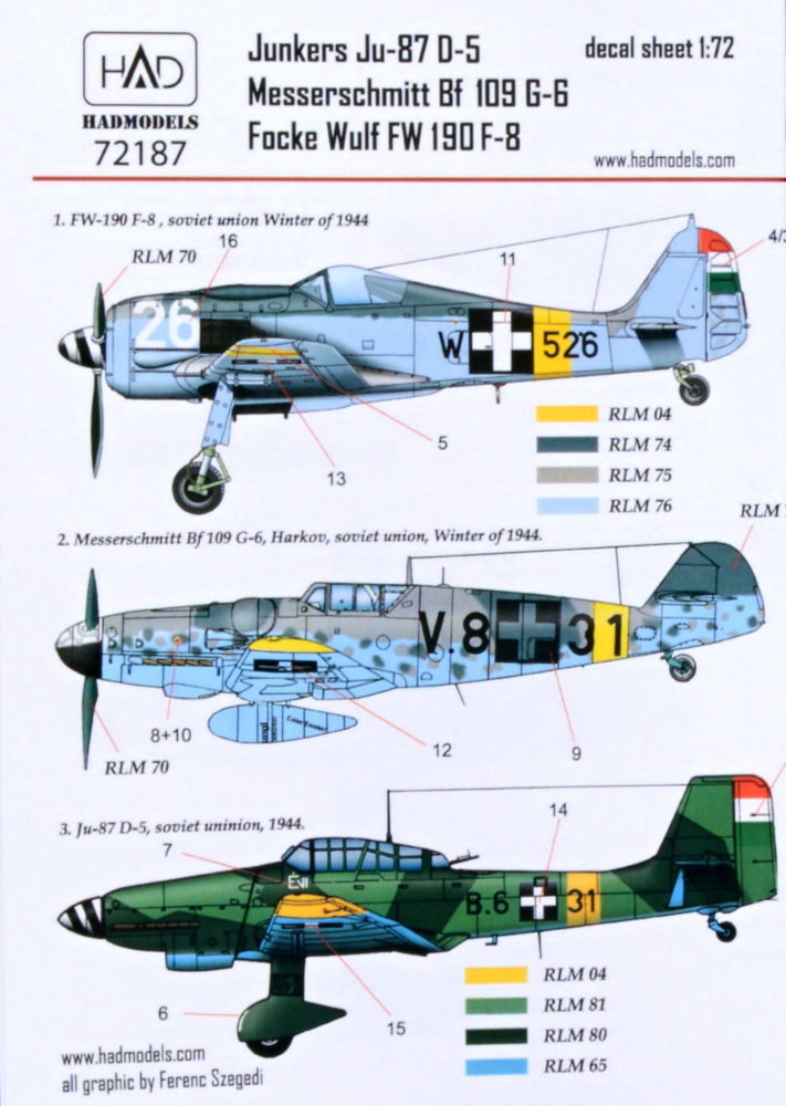 HAD - 1/72 Hungarian Air Force WWII Planes: Junkers Ju87D-5, Messerschmitt Bf019G-6, Focke-Wulf Fw-190F-8