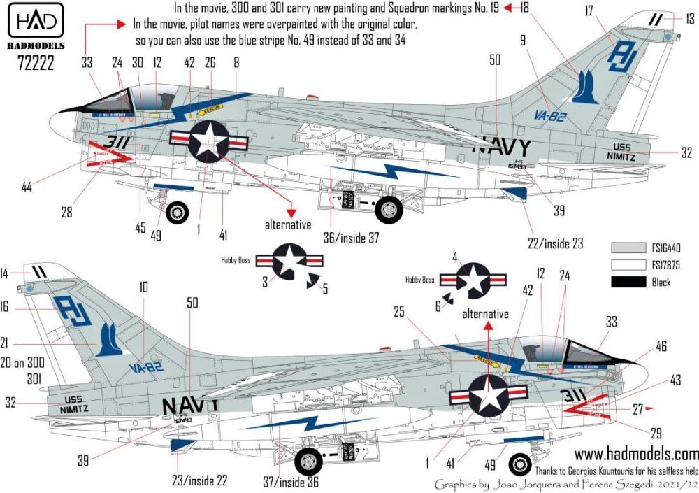 HAD - 1/72 Decal A-7E Corsair II VA-82 The Marauders
