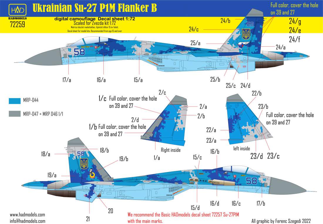 HAD - 1/72 Ukrainian Su-27 P1M Flanker B Digital Camouflage decal sheet
