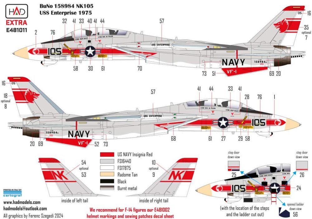 HAD - 1/48 Decal F-14A VF-1 Wolfpack extended version