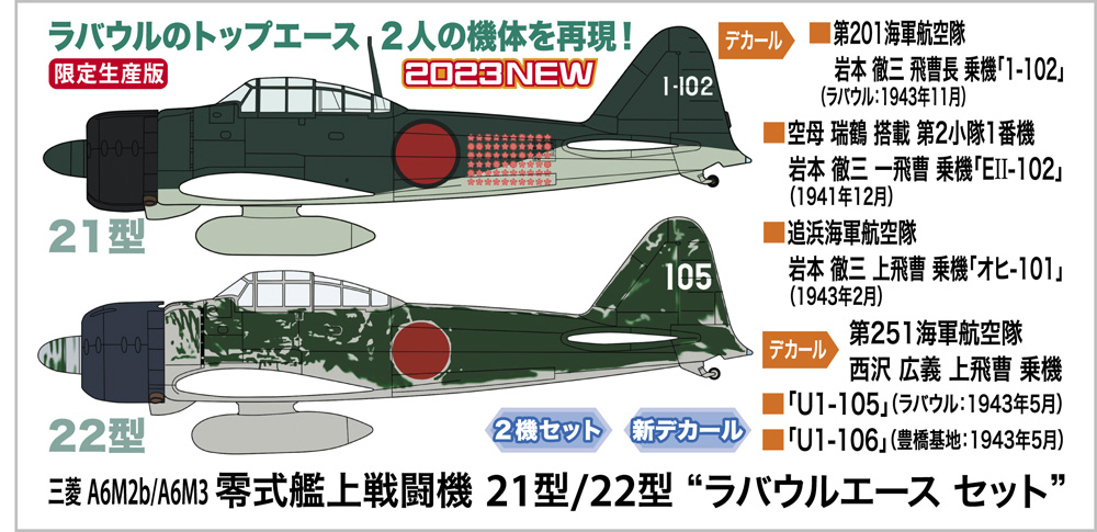 1/72 A6M2B/A6M3 Zero Fighter Type 21/22 Rabaul Ace set