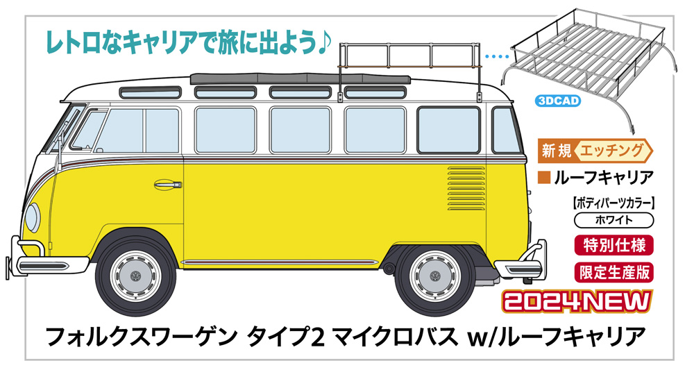 Hasegawa - 1/24 Volkswagen Type 2 Micro Bus With 3DCAD Roof Rack/Carrier