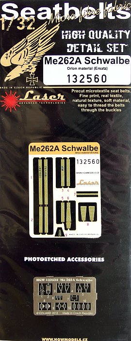 HGW - 1/32 Messerschmitt Me 262A Schwalbe (Orlon) Seatbelts (designed to be used with Revell and Trumpeter kits)