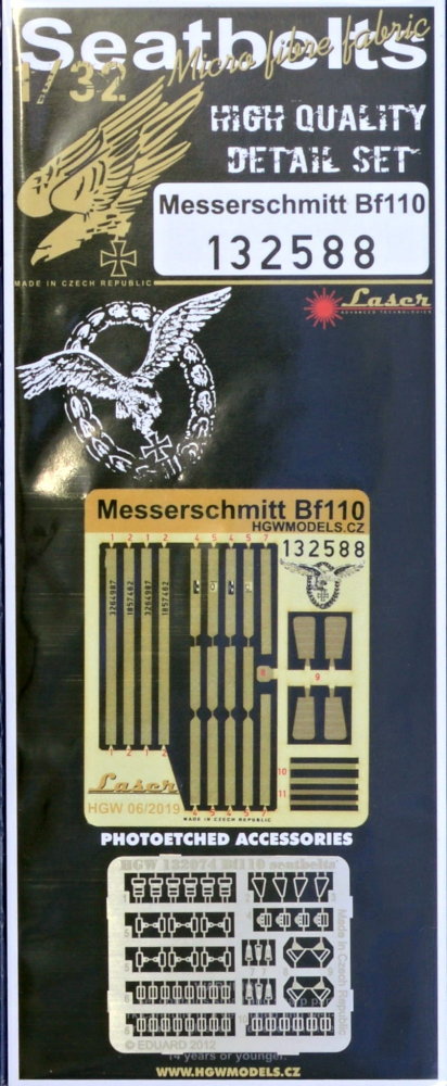 HGW - 1/32 Messerschmitt Bf-110 pre-cut (laser) Seat Belts (for Dragon and Revell kits)