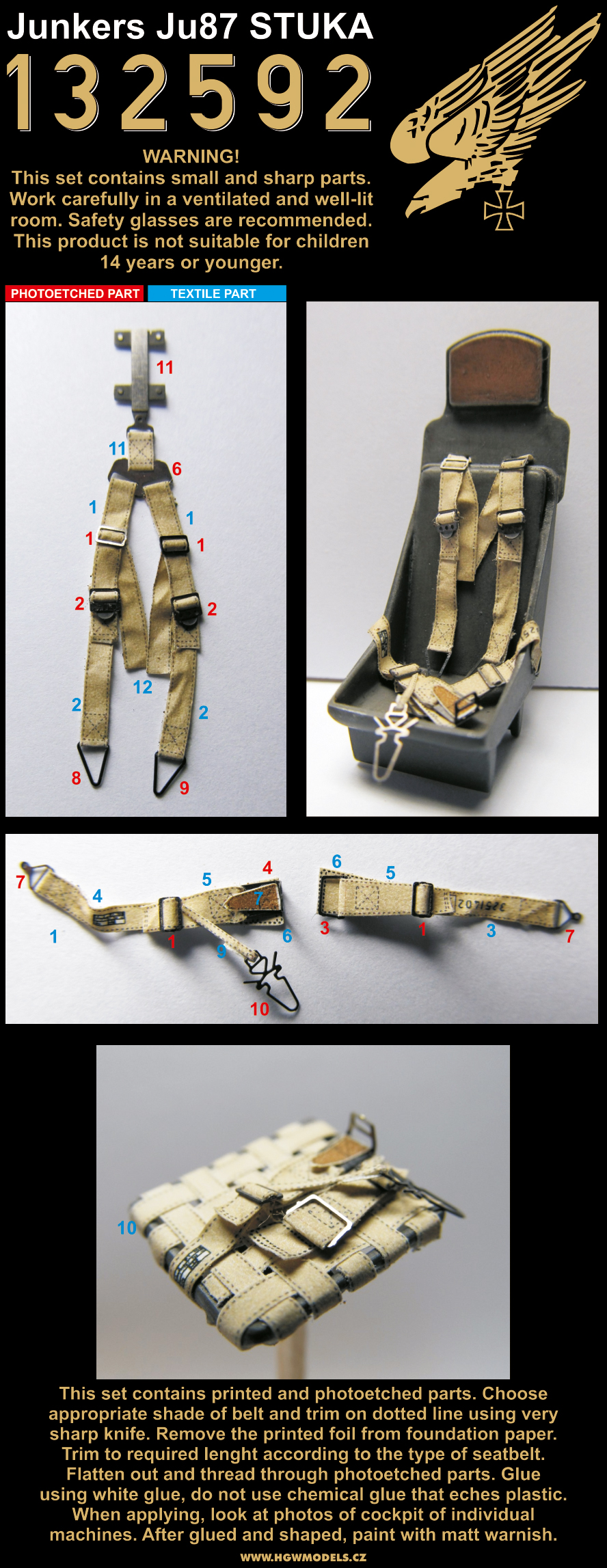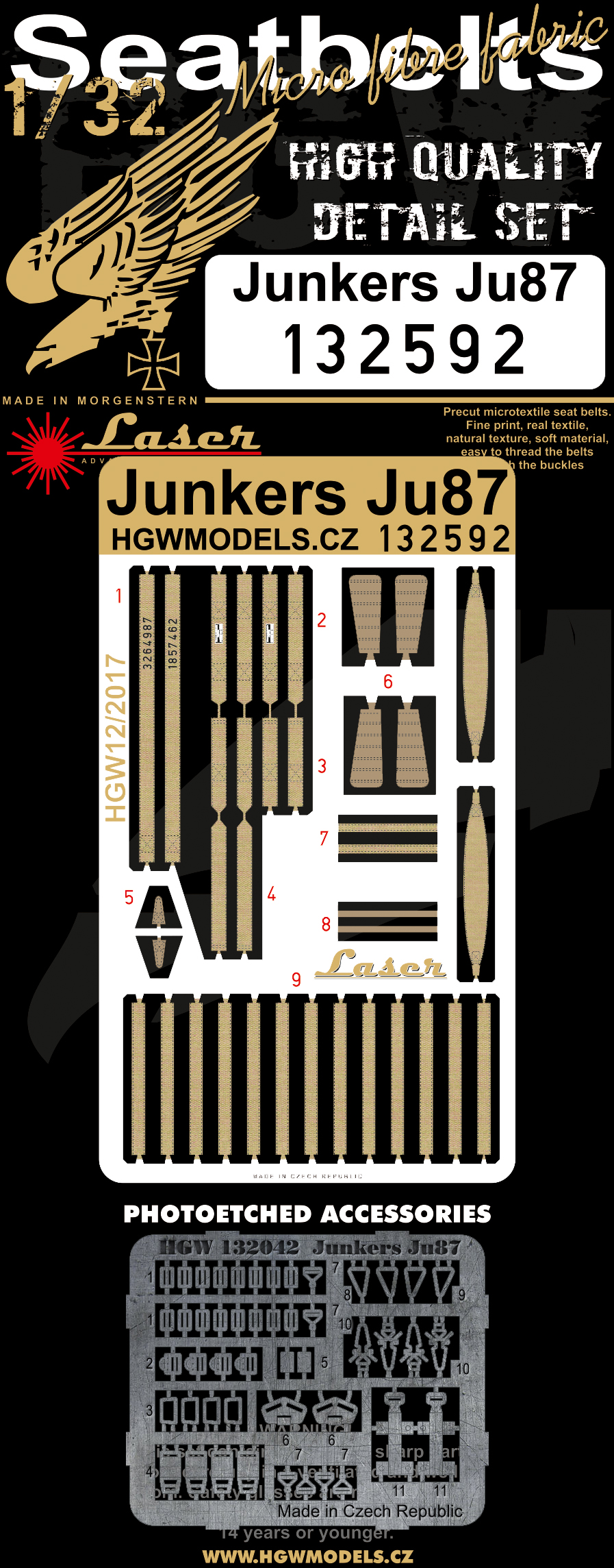 HGW - 1/32 Junkers Ju-87 'Stuka' pre-cut (laser) seat belts (for Hasegawa, Revell and Trumpeter kits)[Ju-87D-8 Ju-87D-5 Ju-87D-4 Ju-87G Ju-87D 'Ju-87A Ju-87B-2 Ju-87B-2/U4 Ju-87R Ju-87D Ju-87G-2]