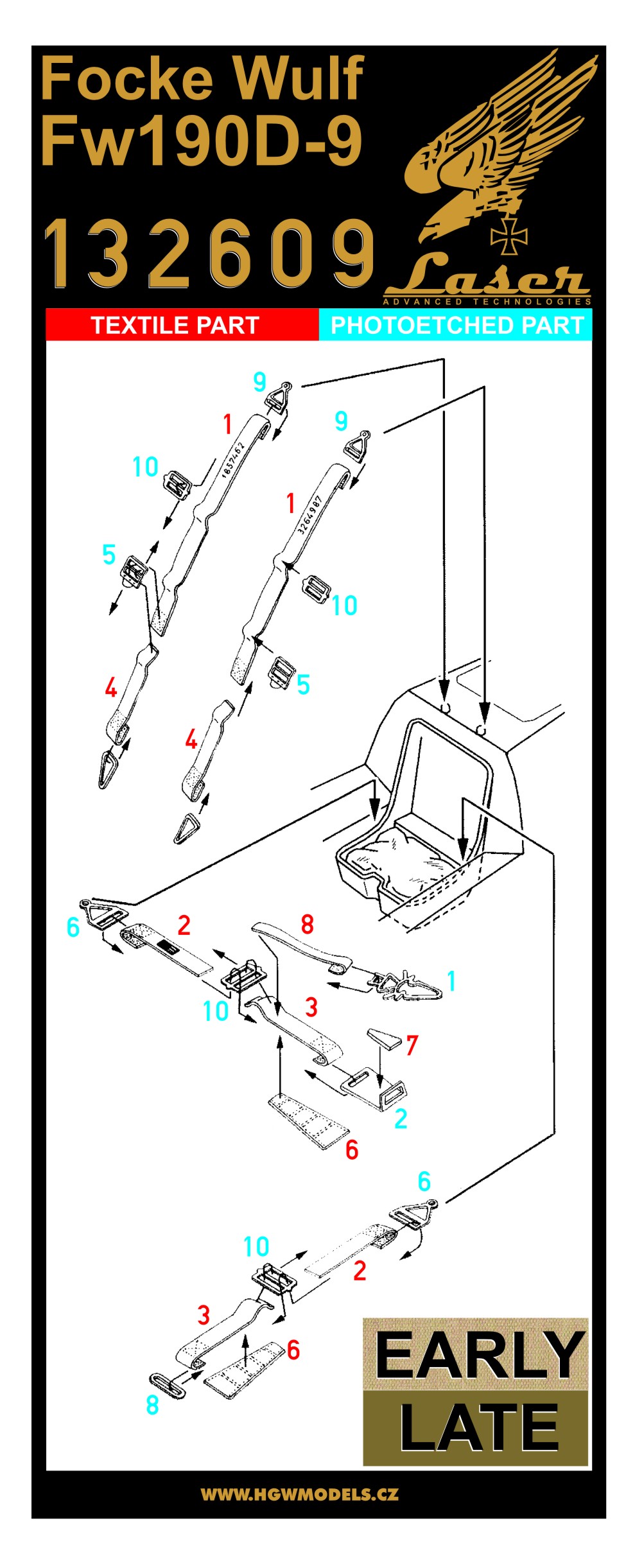 HGW - 1/32 Focke-Wulf Fw 190D-9 pre-cut (laser)seat belts (for Hasegawa, Revell and Trumpeter kits)