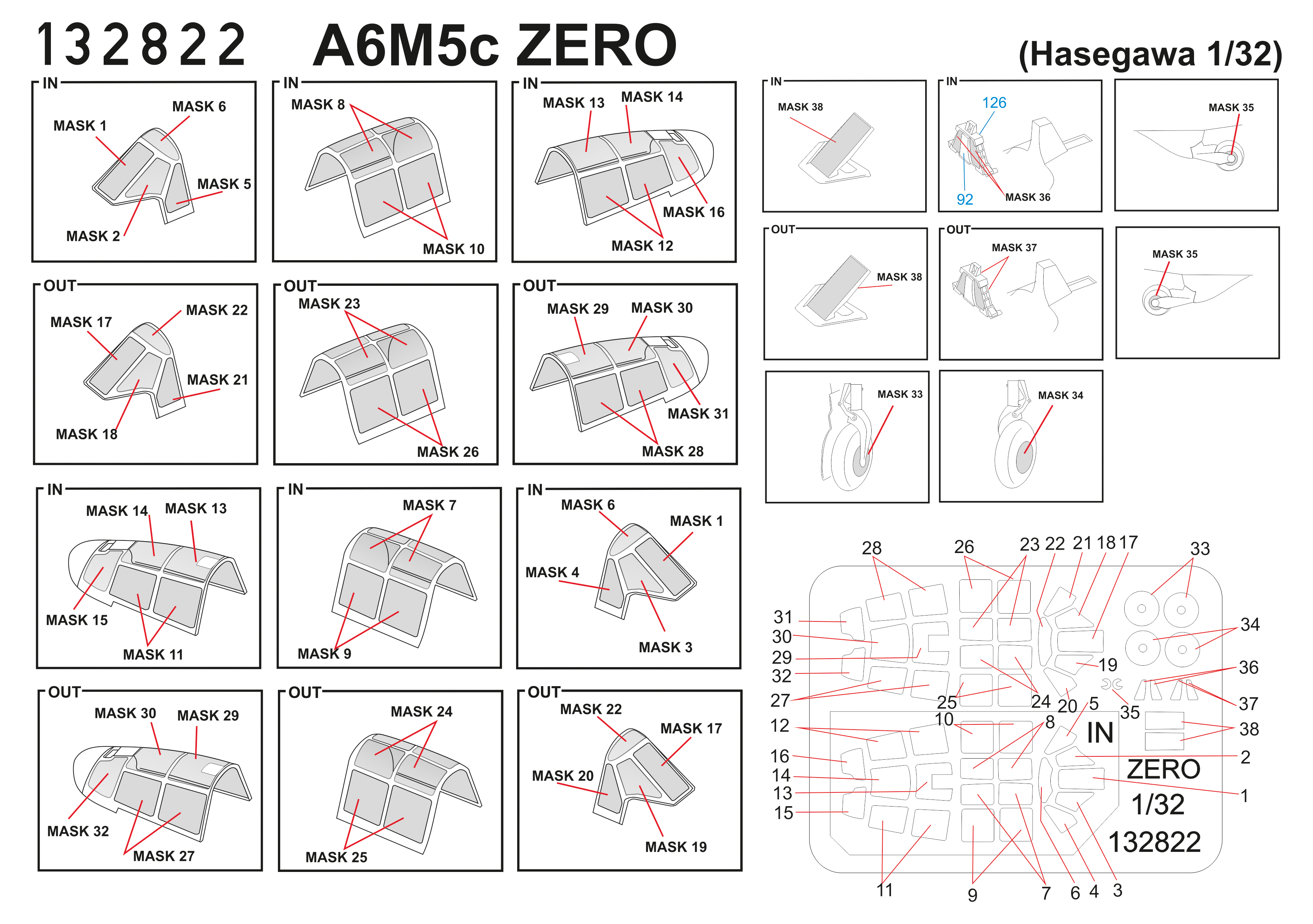 HGW - 1/32 Mitsubishi A6M5c Zero BASIC LINE: seatbelts + masks (for Hasegawa kits)