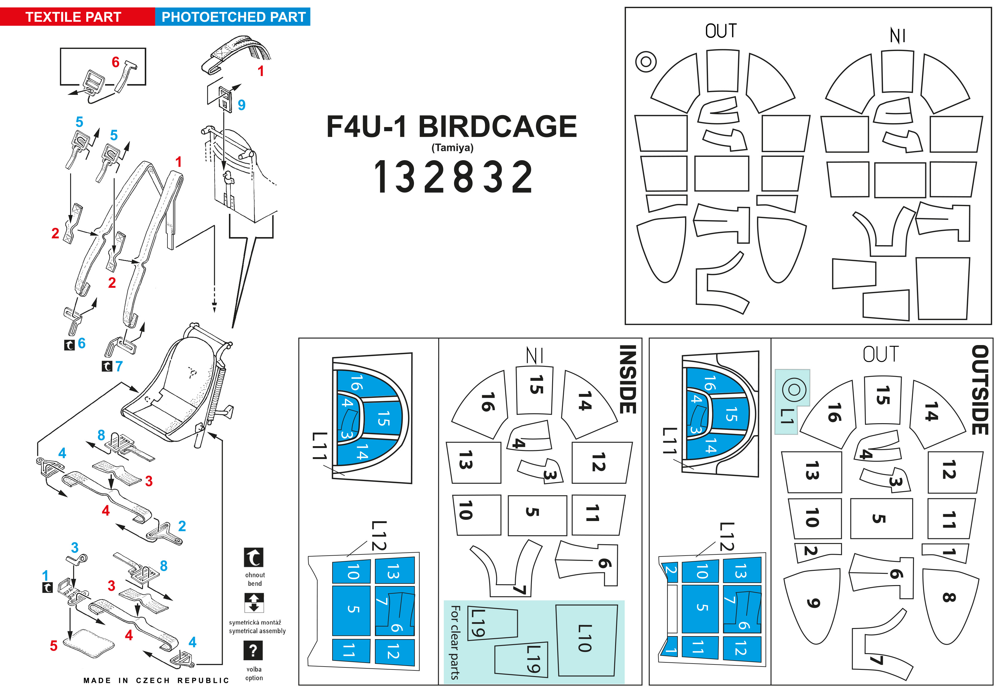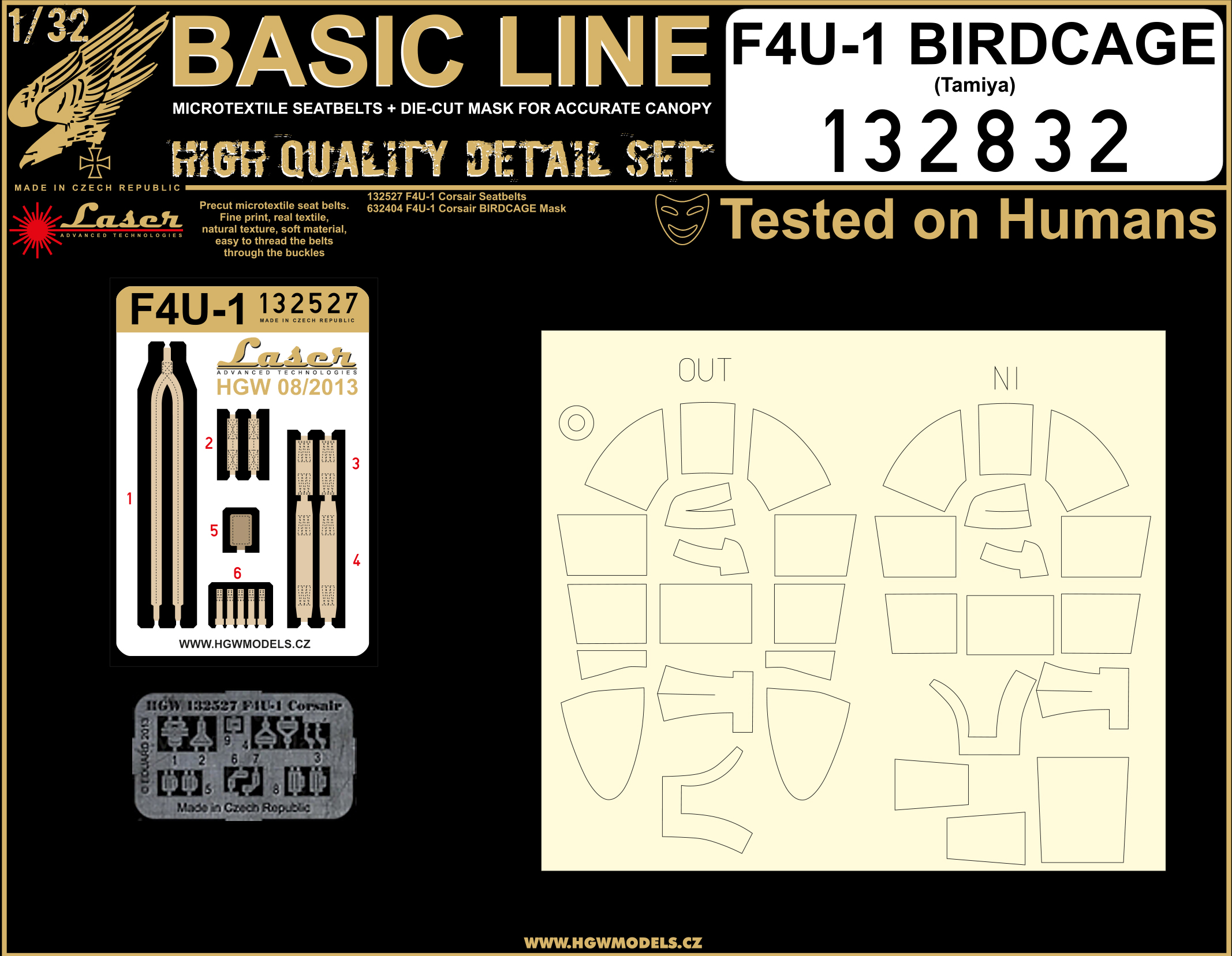 HGW - 1/32 Vought F4U-1 Corsair Birdcage Basic LINE: seatbelts + canopy inside and outside masks (for Tamiya kits)