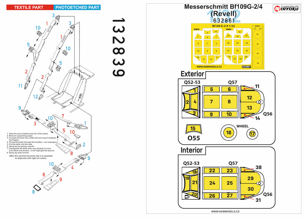 HGW - 1/48 Messerschmitt Bf-109G-2/4 Basic LINE: seatbelts + masks (for Revell kits)