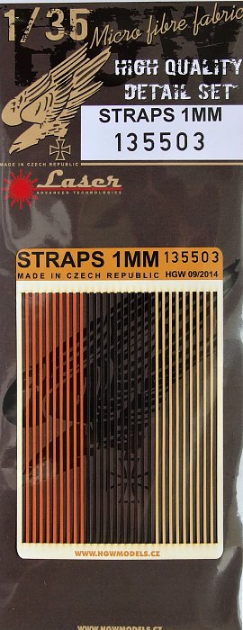 HGW - 1/35 Straps 1mm - Belts 1/35 - Accessory designed for plastic scale models of military vehicles. Seat belts from HGW Models are laser-cut so it is easy-to-use product. Set contains micro fabric belts for kits in 1/35 scale.