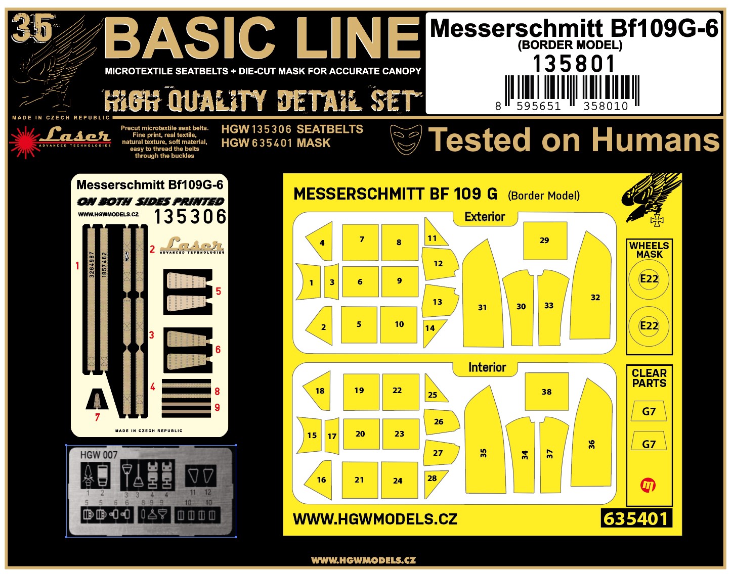 HGW - 1/35 Messerschmitt Bf-109G-6 Basic LINE: seatbelts + masks Border Model