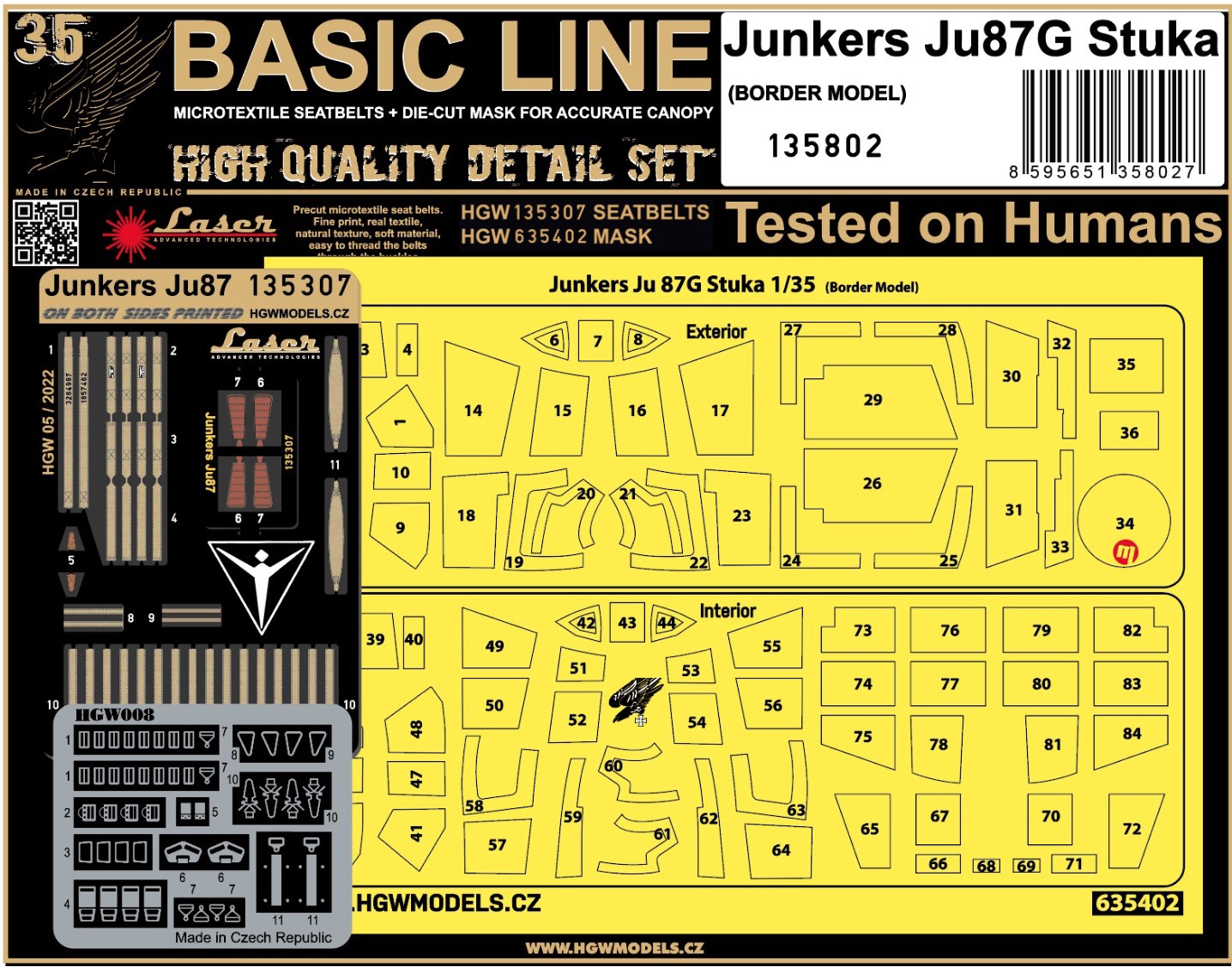 HGW - 1/35 Junkers Ju-87 'Stuka' Basic LINE: seatbelts + canopy frame paint masks inside and outside (for Border Model kits)