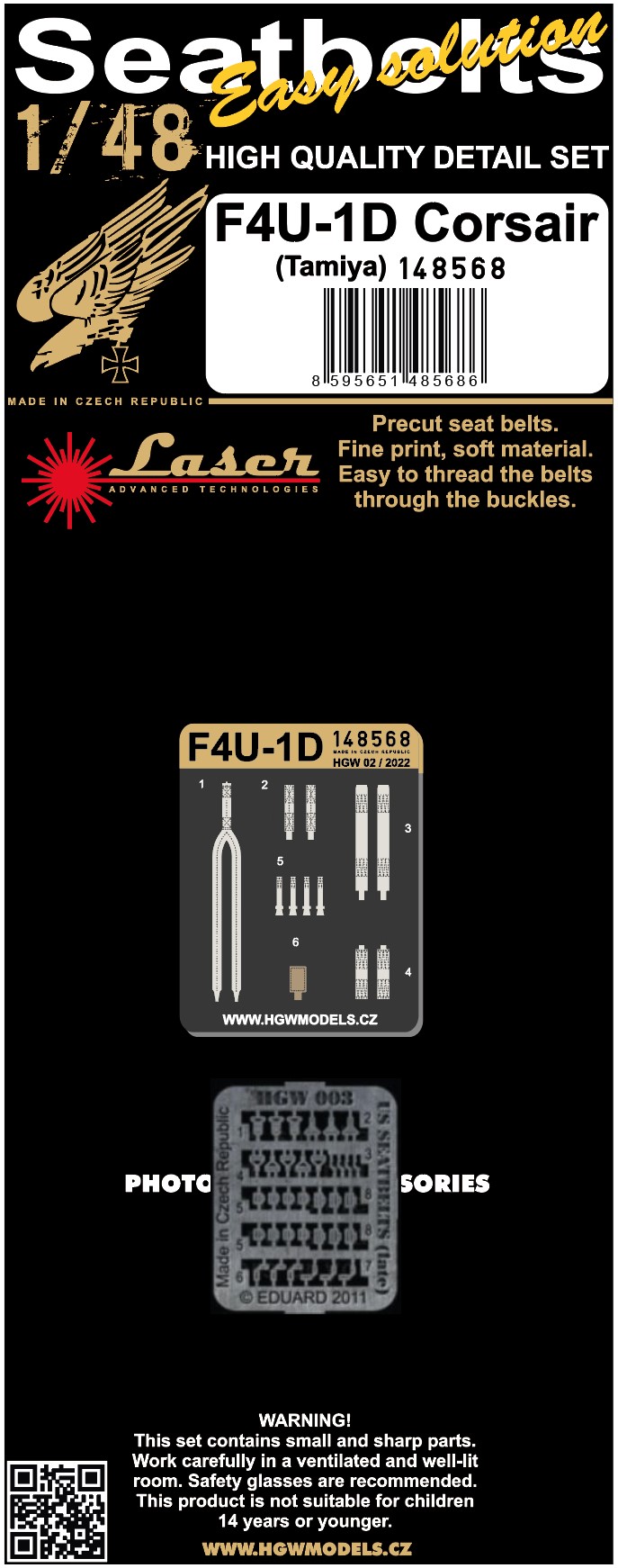 HGW - 1/48 Vought F4U-1D Corsair pre-cut Seatbelts (laser) (for Tamiya kits)