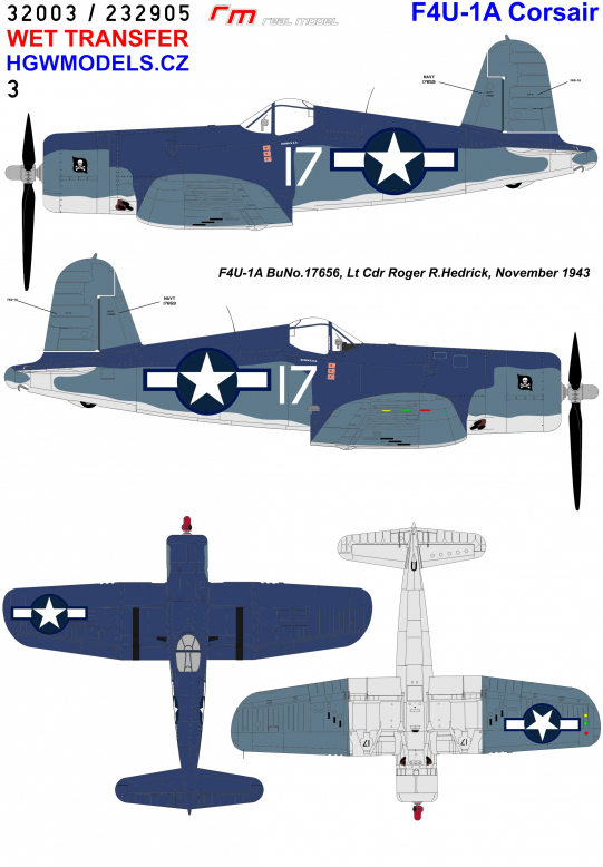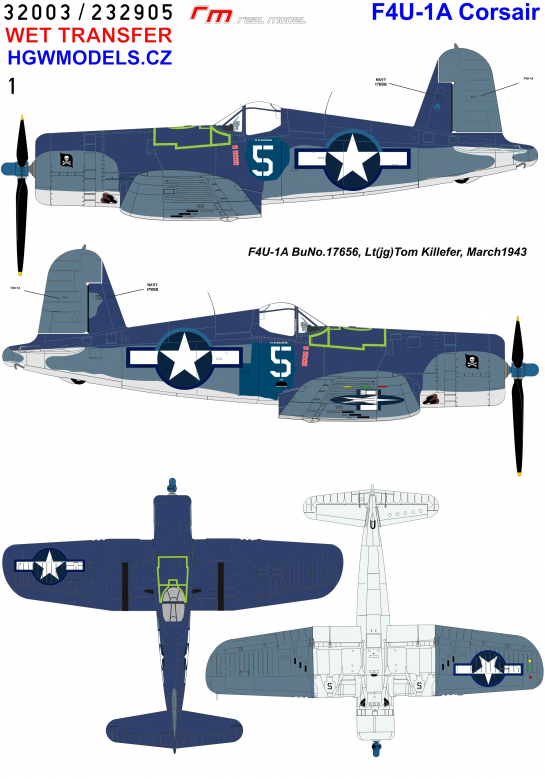 HGW - 1/32 Vought F4U-1A Corsair Jolly Rogers (for Tamiya kits) Wet Transfers