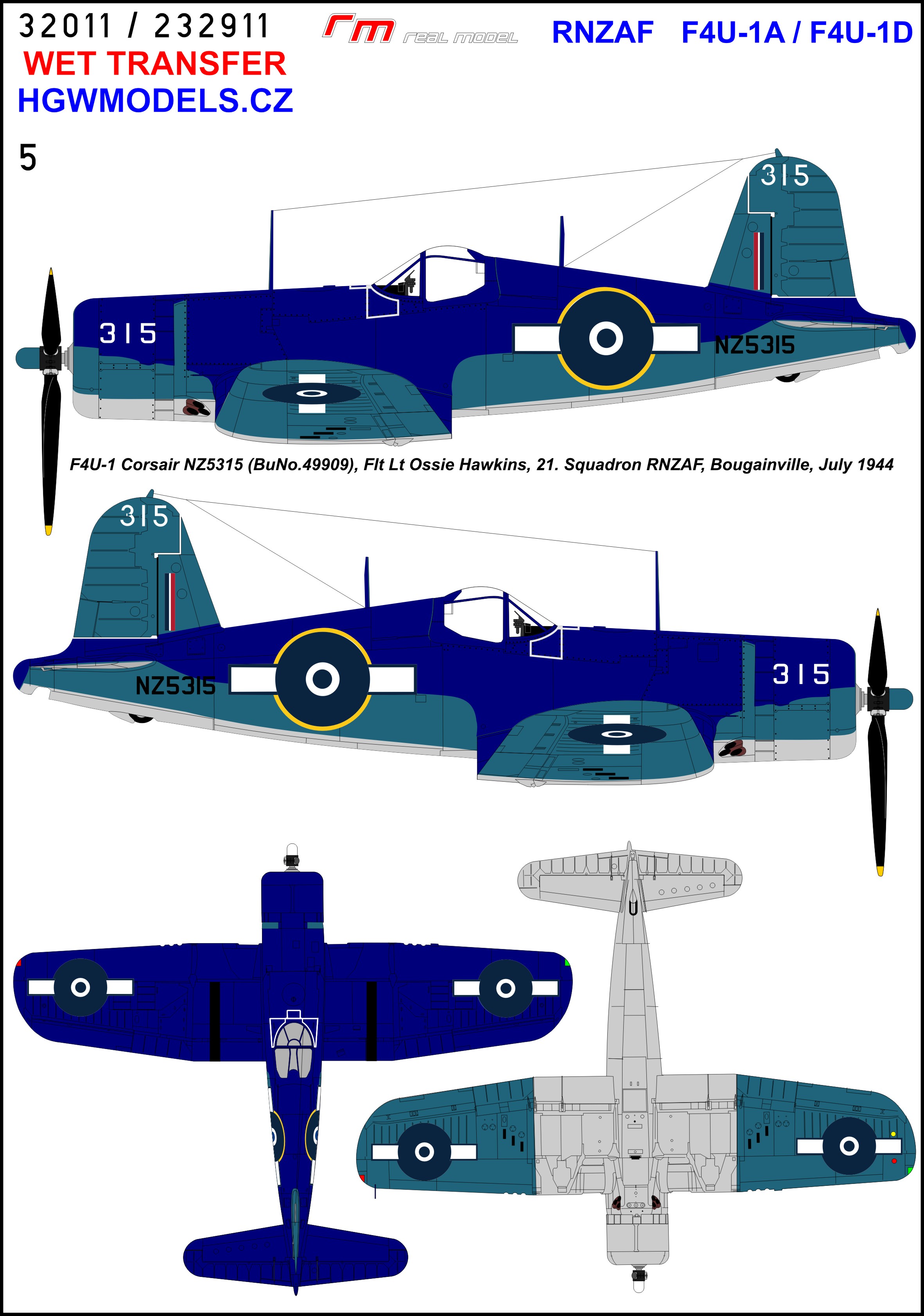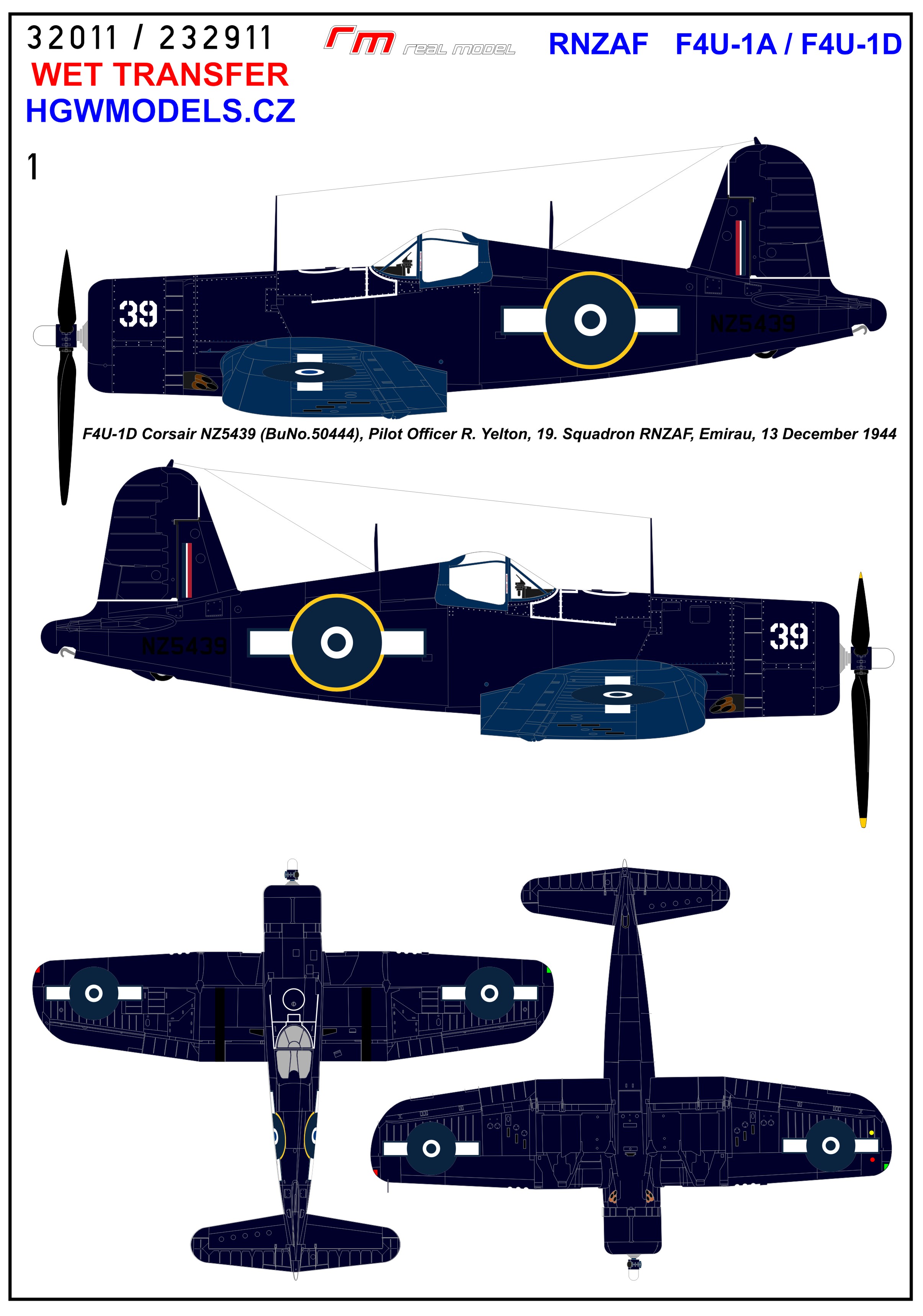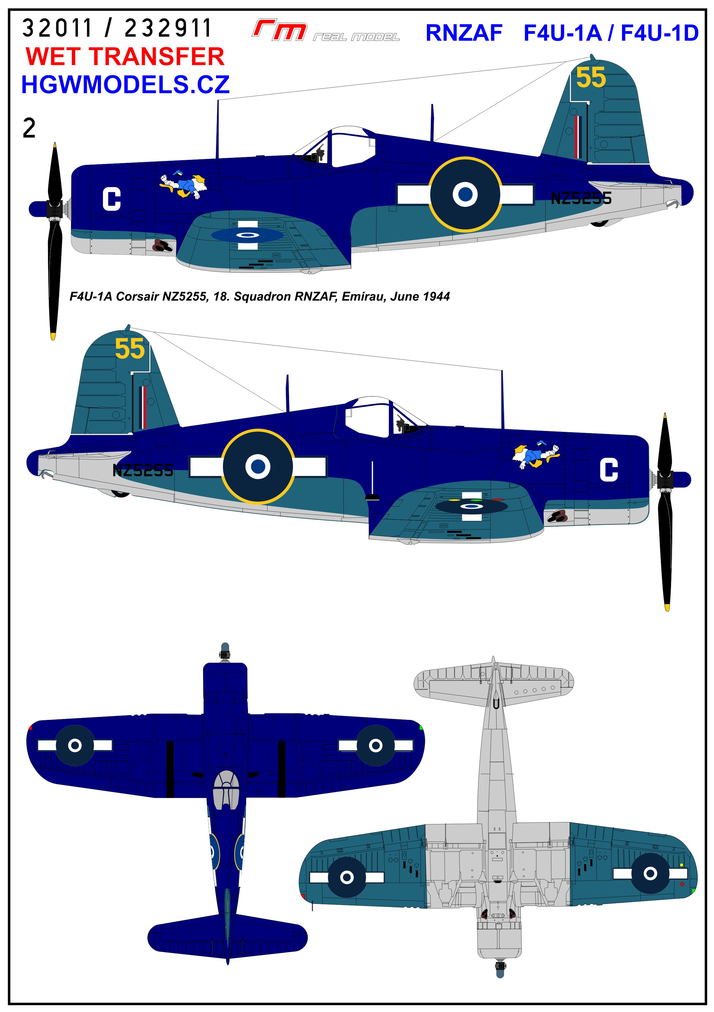 HGW - 1/32 Rnzaf Vought F4U-1A / F4U-1D Corsair Markings