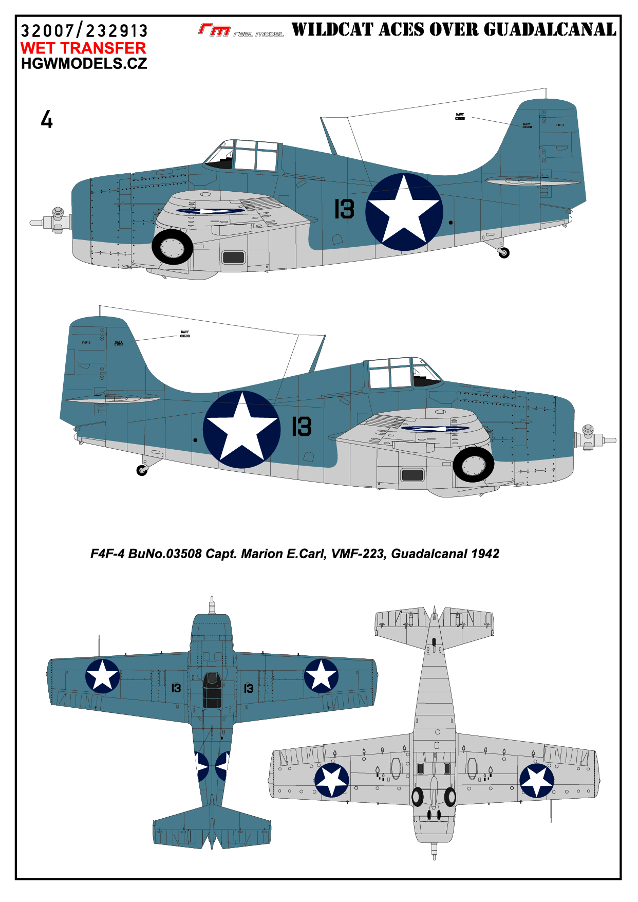 HGW - 1/32 Grumman F4F-3/F3F-4 Wilcat Aces over Guadalcanal