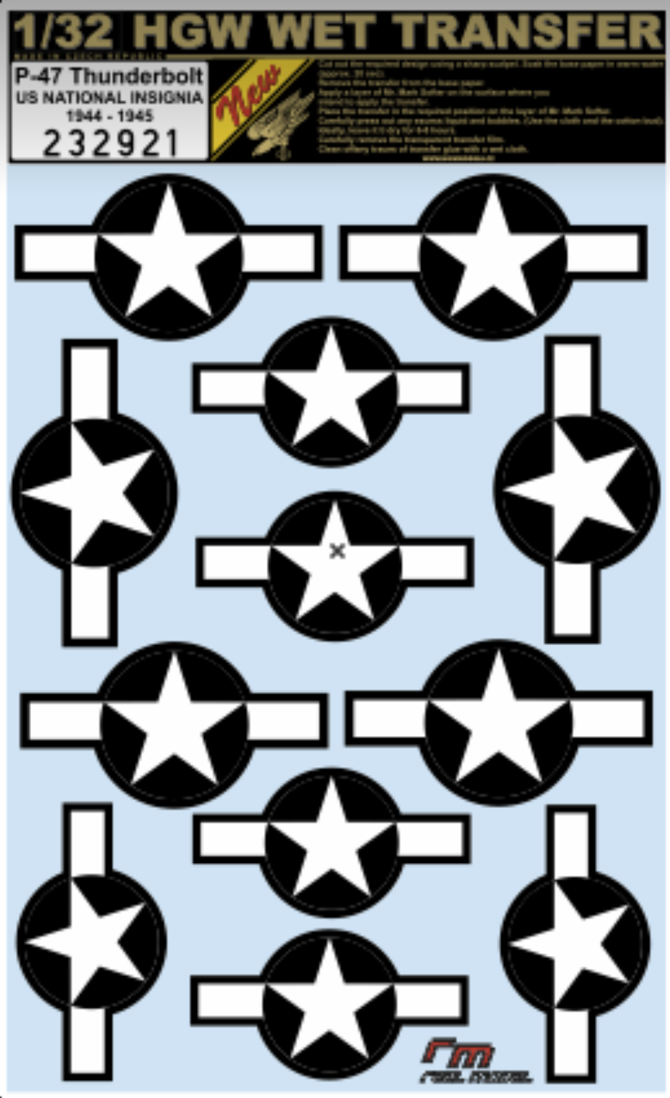 HGW - 1/32 Decals P-47 Thunderbolt US Insignia 1944-45