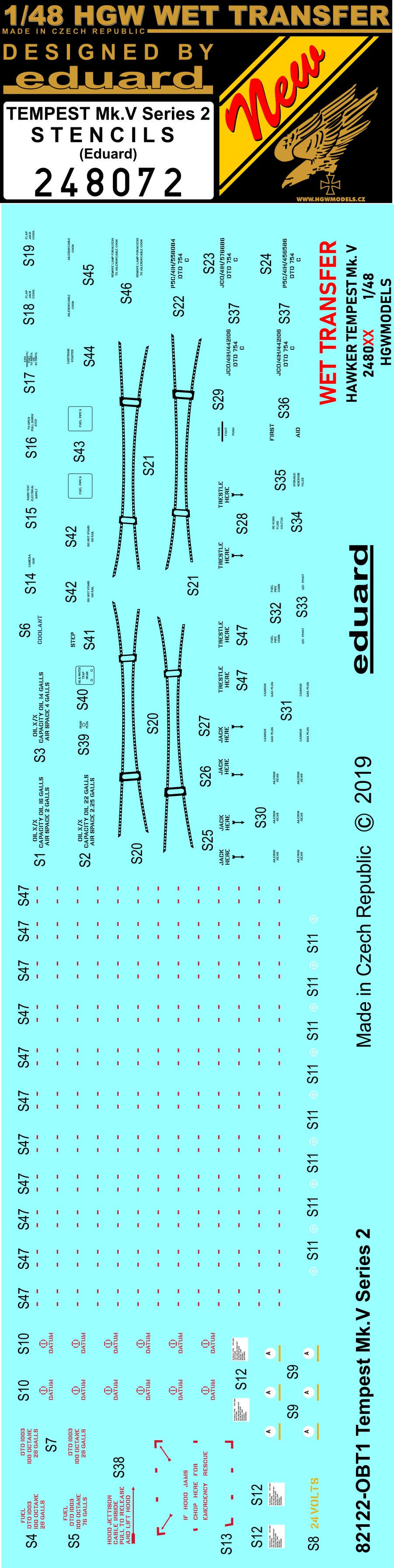 HGW - 1/48 Hawker Tempest Mk.V Series 2 - Stencils (for Eduard kits)