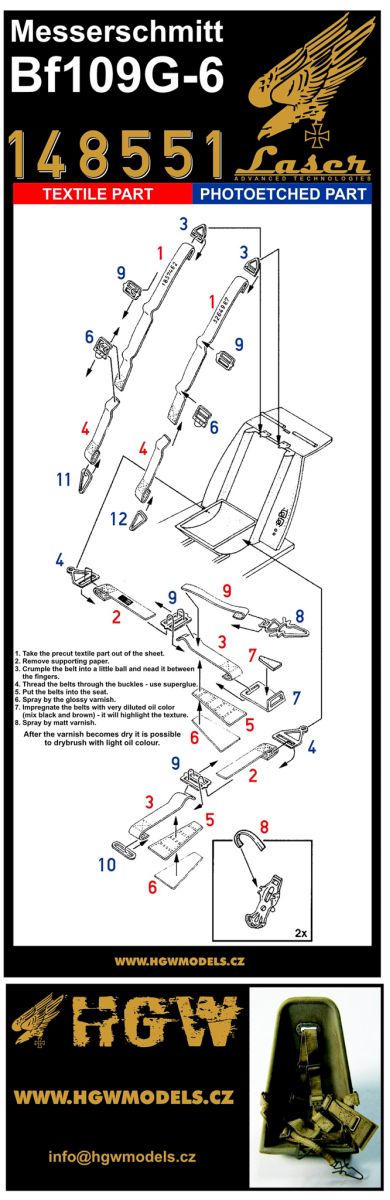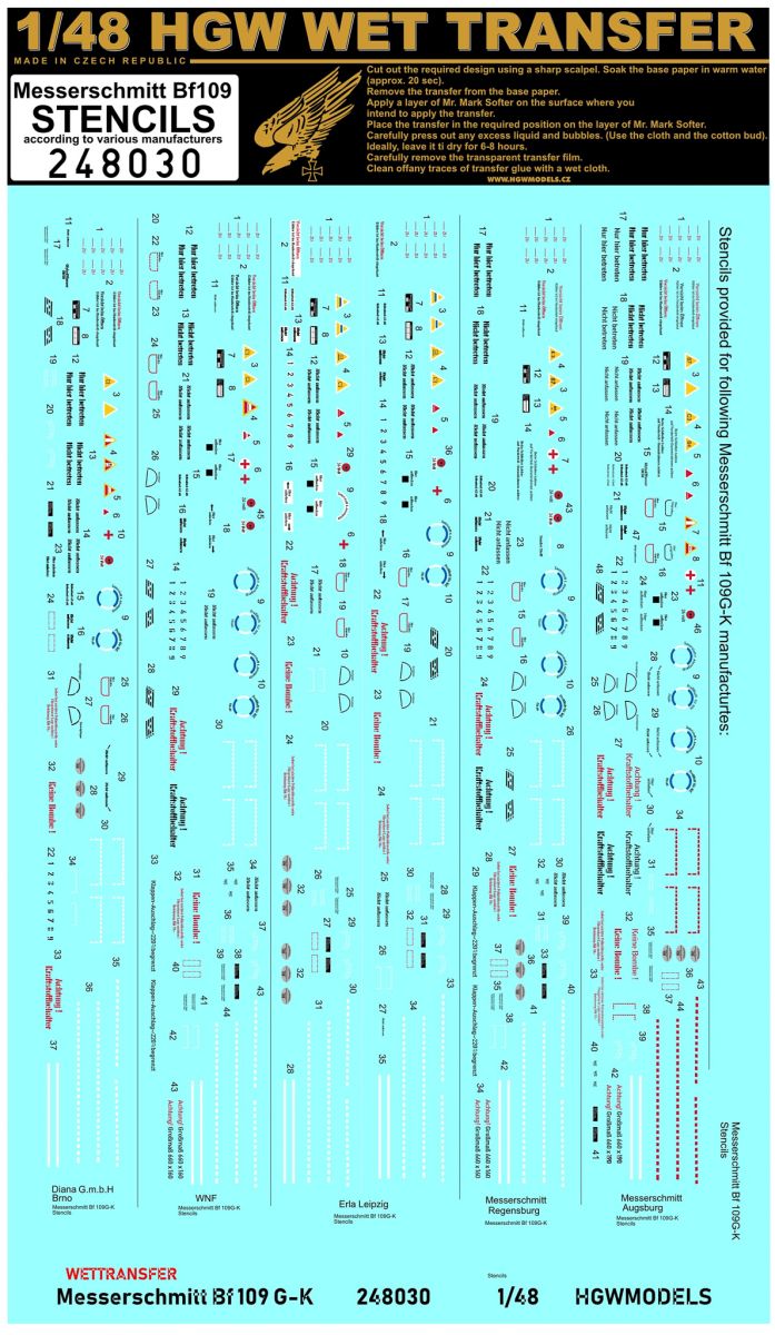 HGW - 1/48 Messerschmitt Bf-109G-6 - Super Positive Riveting Set includes HGW481029 + HGW148551 + HGW248030 (for Tamiya kits)