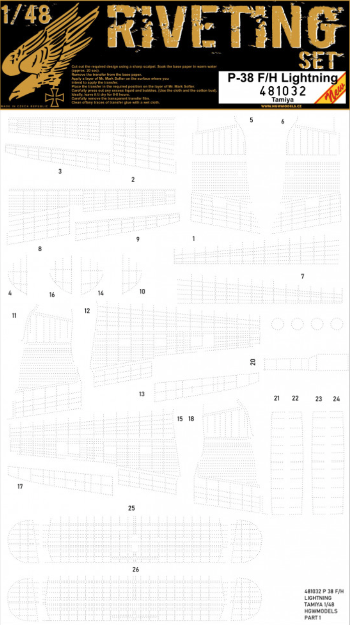 HGW - 1/48 Lockheed P-38F/G Lightning Riveting Sets (for Tamiya kits)